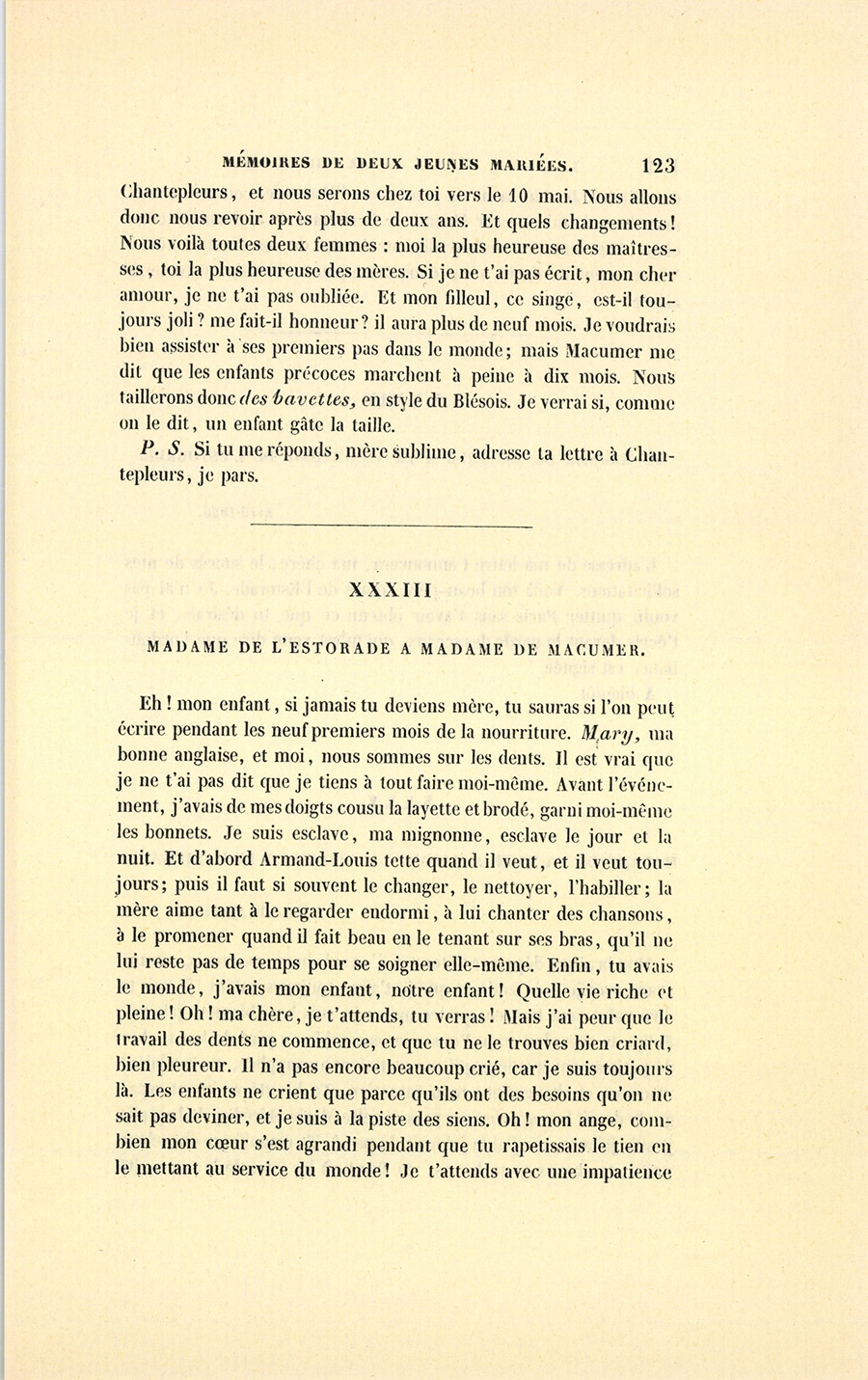 Madame de l’Estorade à mademoiselle de Chaulieu §