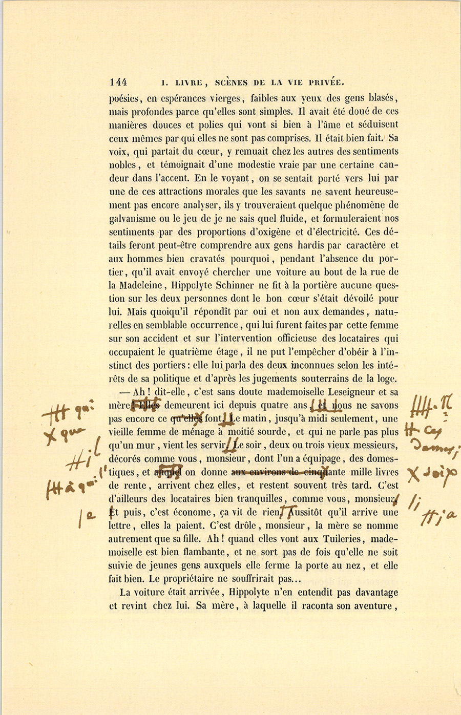 – Écoute, Hippolyte, reprit le sculpteur, viens ici vers quatre heures, et analyse un peu la marche de la mère et de la fille. Si, après, tu as des doutes ! hé bien, l’on ne fera jamais rien de toi : tu seras capable d’épouser la fille de ta portière.
