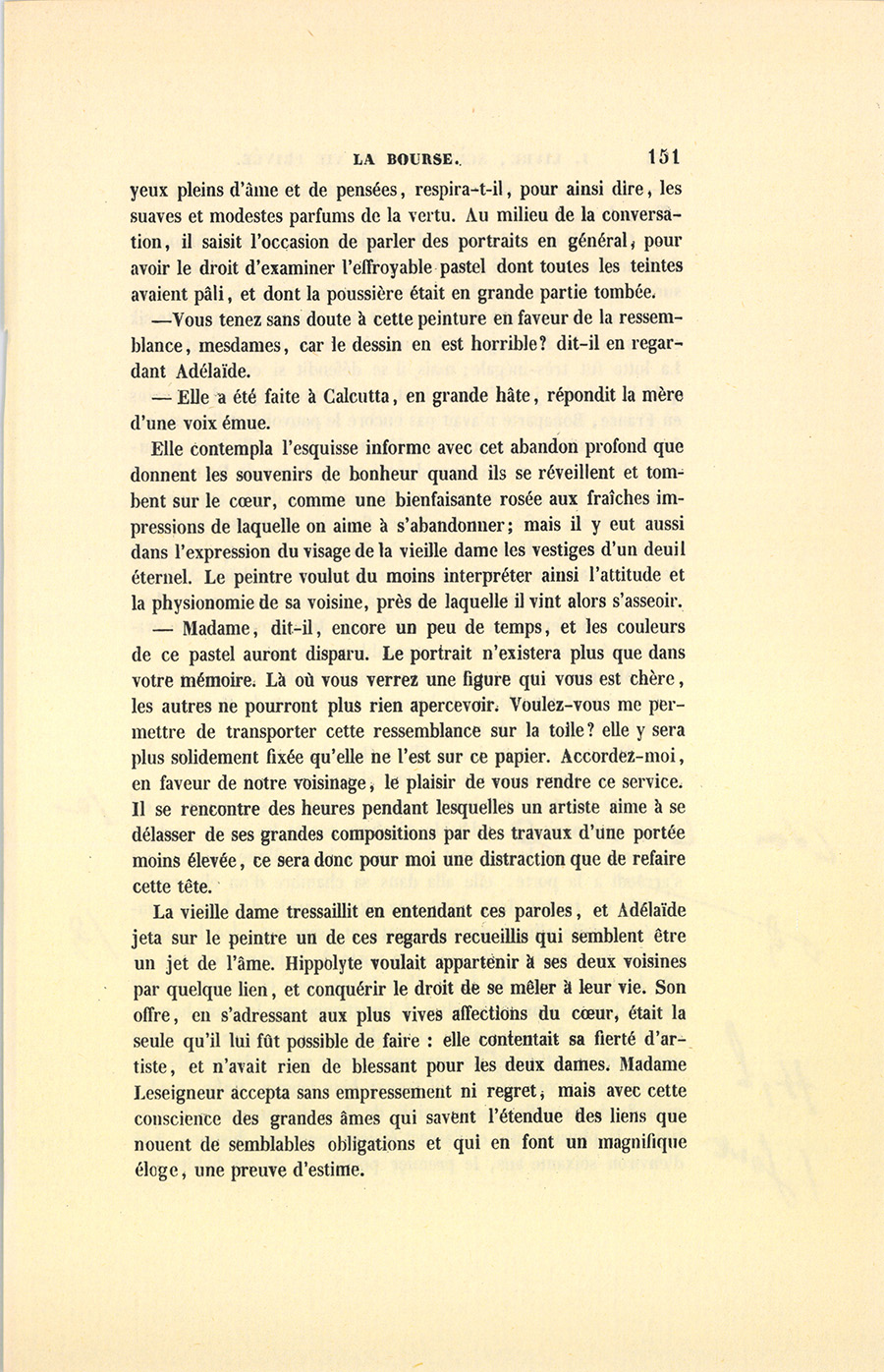 – Vous tenez sans doute à cette peinture en faveur de la ressemblance, mesdames, car le dessin en est horrible ? dit-il en regardant Adélaïde.