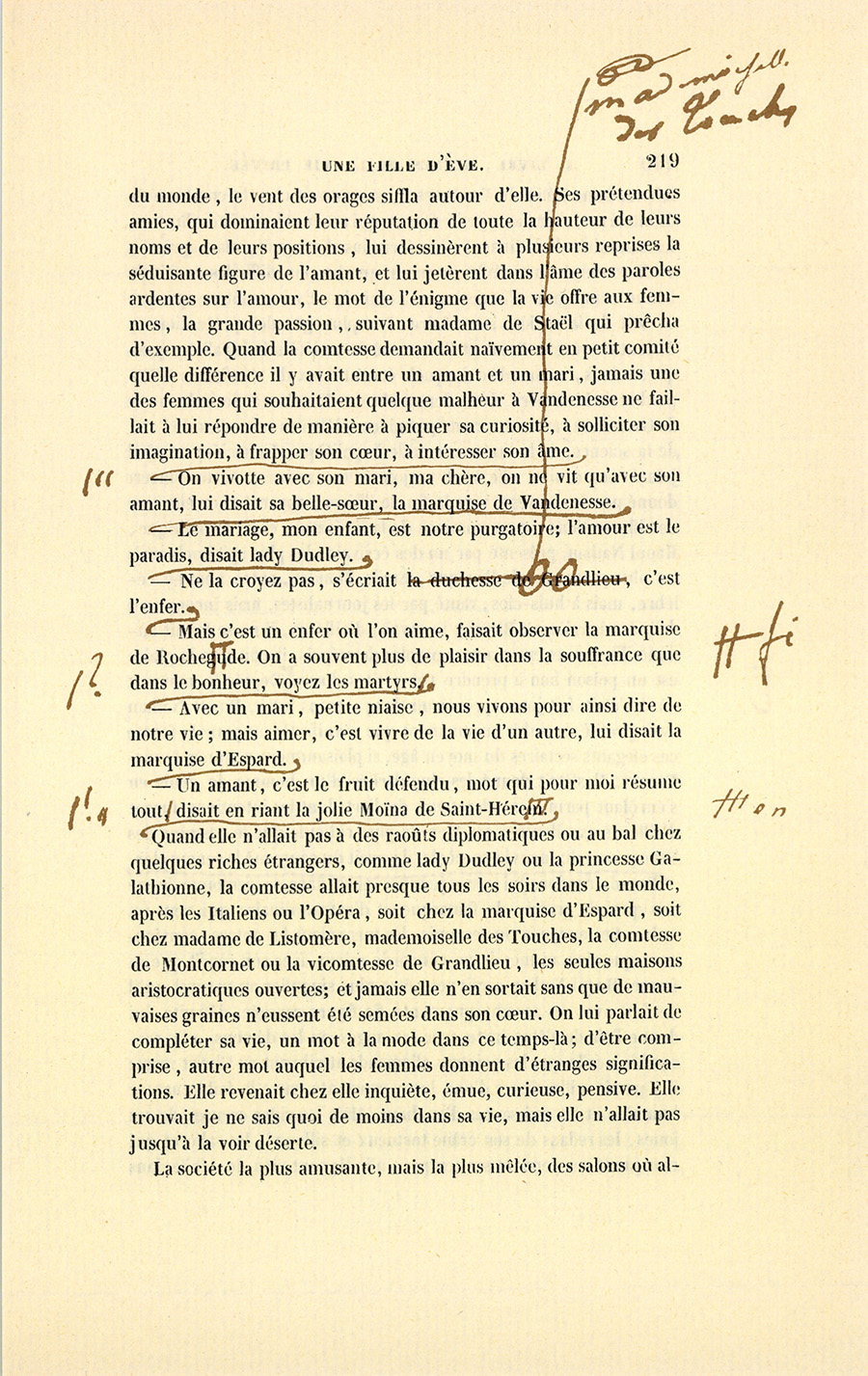 – Pauvre sot ! tu te perds, Marie est ici et te voit, dit à Nathan Vandenesse qui s’était déguisé en femme.