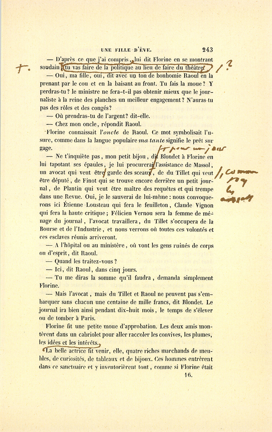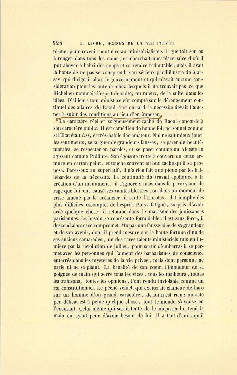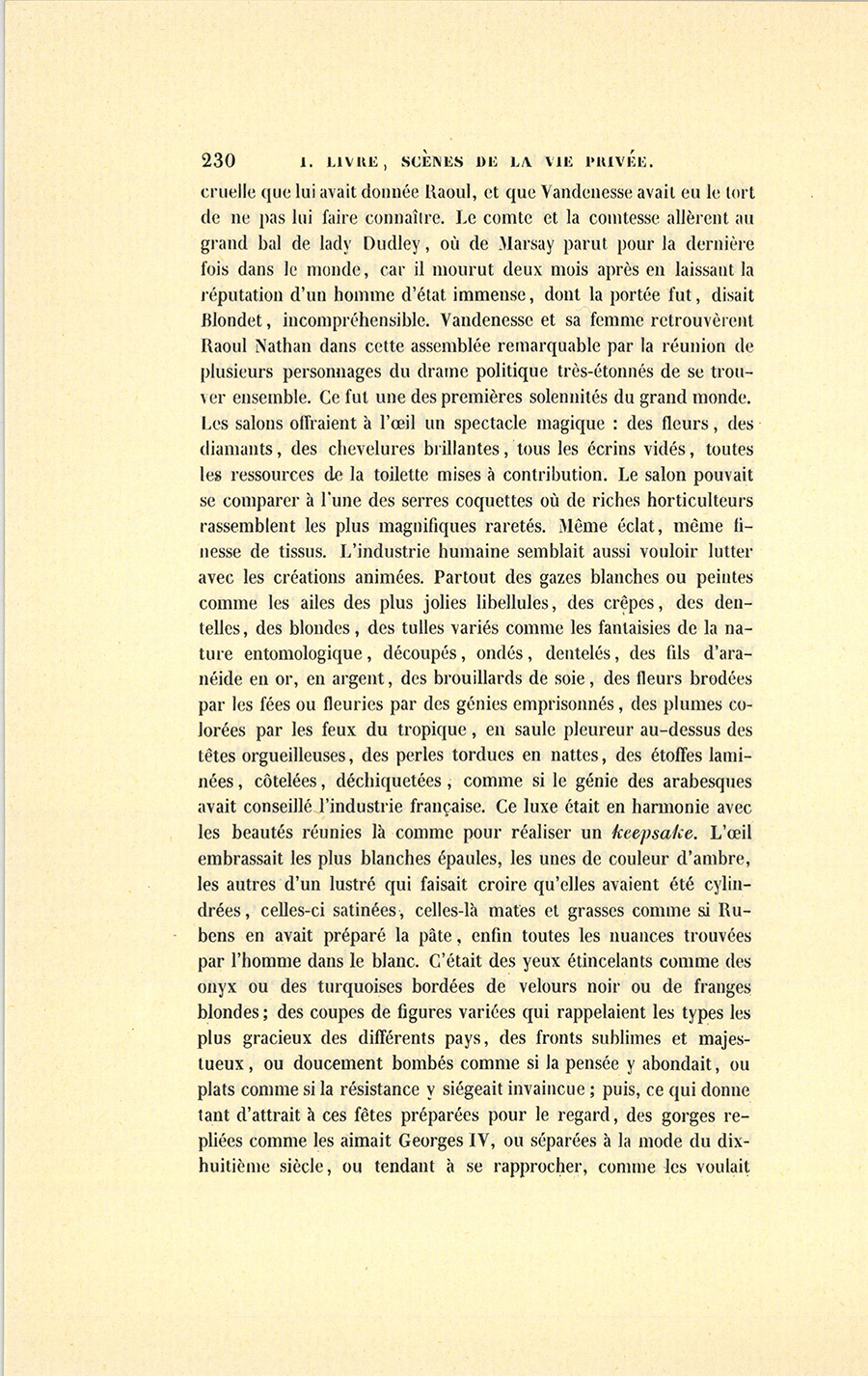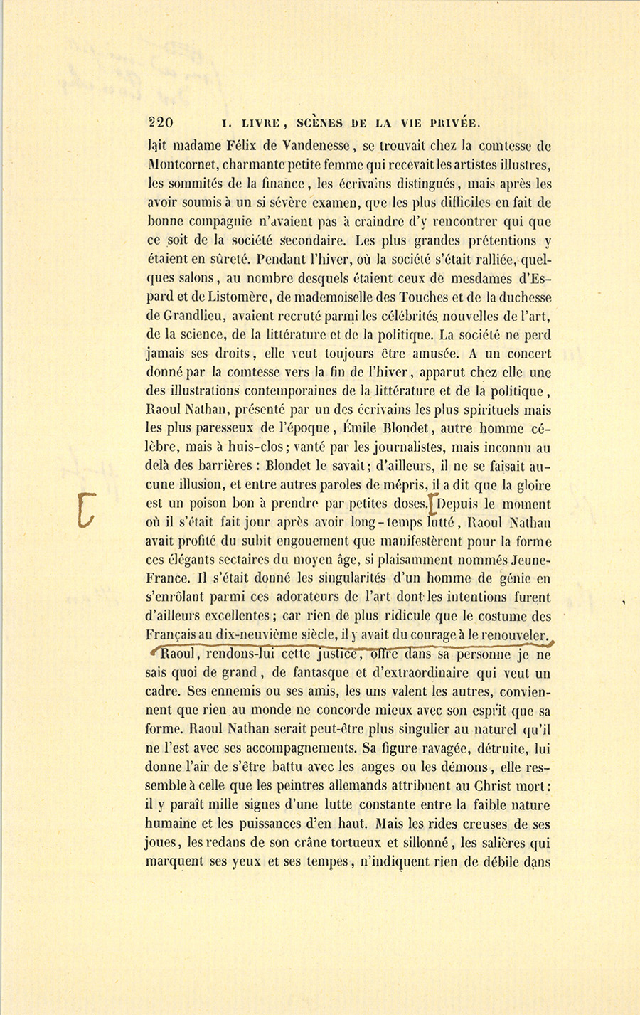 Raoul et Blondet partirent ensemble avec Rastignac, qui leur offrit sa voiture. Tous trois se mirent à rire de la réunion d’un {p. 228} sous-secrétaire-d’état éclectique, d’un républicain féroce et d’un athée politique.