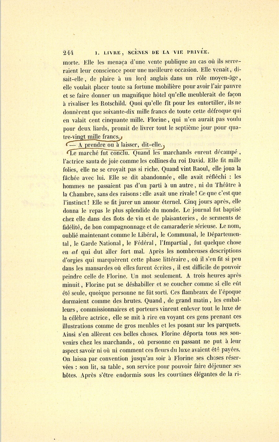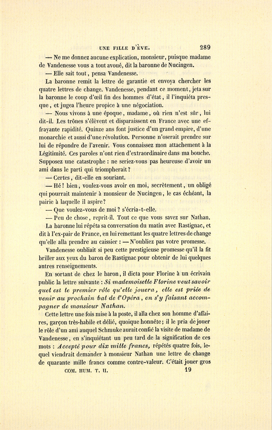 {p. 297} – Veux-tu les céder en échange de ceci ? dit Vandenesse en tendant à Florine la lettre de change de quarante mille francs.