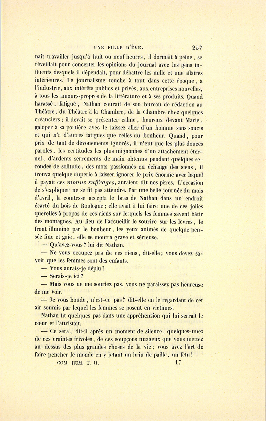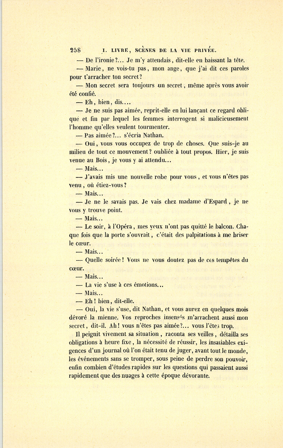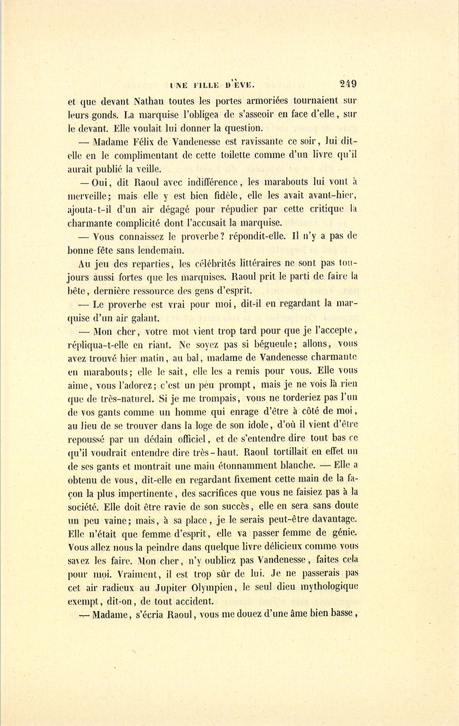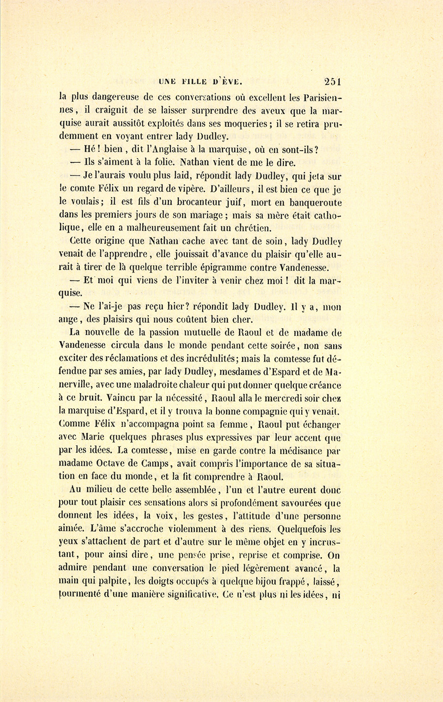 Le lendemain, vers minuit, au bal de l’Opéra, Nathan se promenait dans le foyer en donnant le bras à un masque d’un air assez marital. Après deux ou trois tours, deux femmes masquées les abordèrent.