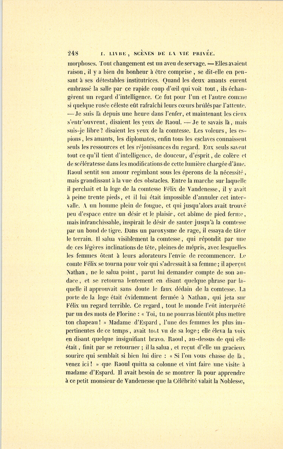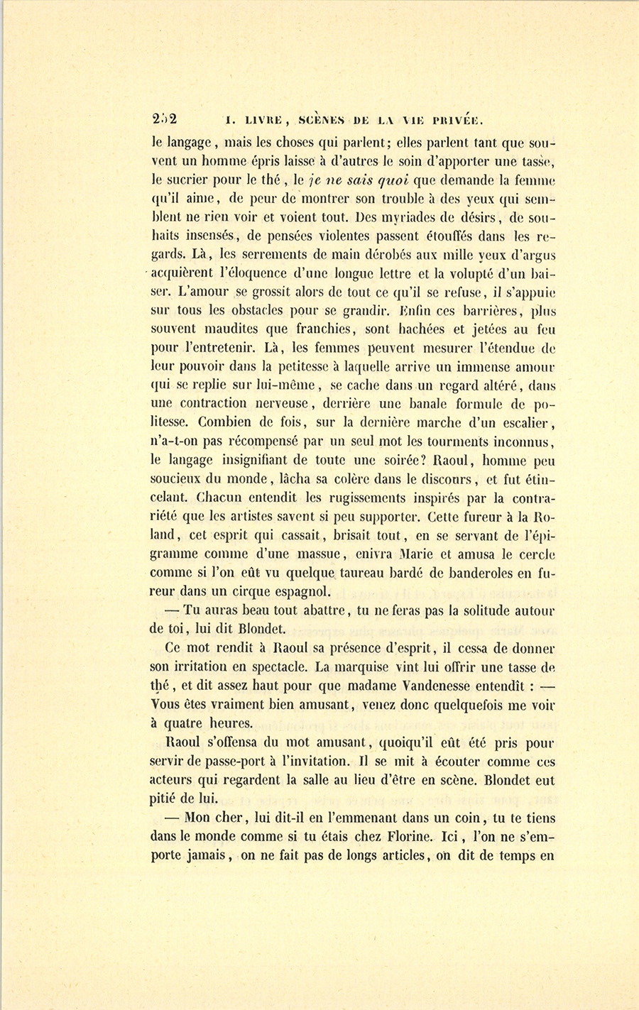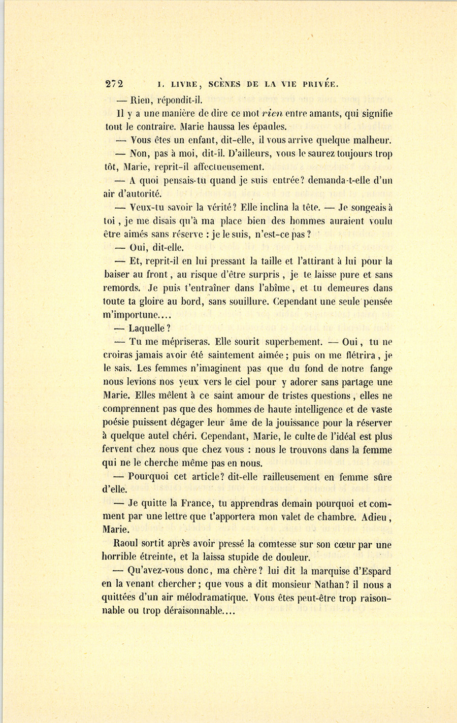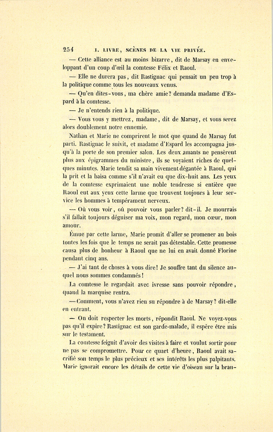 – Mon cher, dit madame d’Espard à l’oreille de Raoul, vous êtes un heureux coquin. Vous avez fait ce soir plus d’une conquête, mais, entre autres, celle de la charmante femme qui nous a si brusquement quittés.