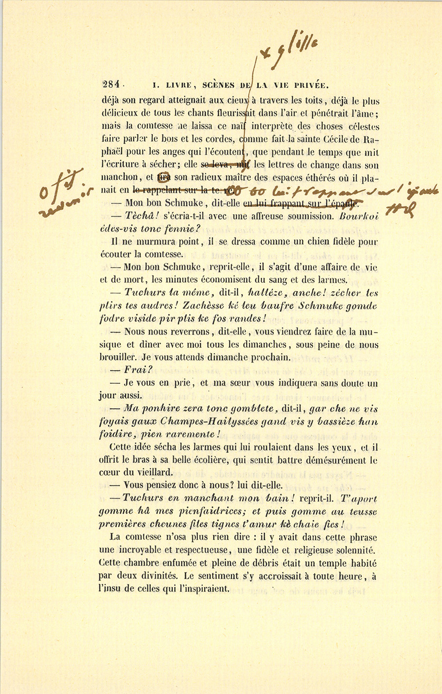 En sortant de chez le baron, il dicta pour Florine à un écrivain public la lettre suivante : Si mademoiselle Florine veut savoir quel est le premier rôle qu’elle jouera, elle est priée de venir au prochain bal de l’Opéra, en s’y faisant accompagner de monsieur Nathan.