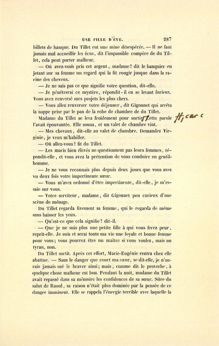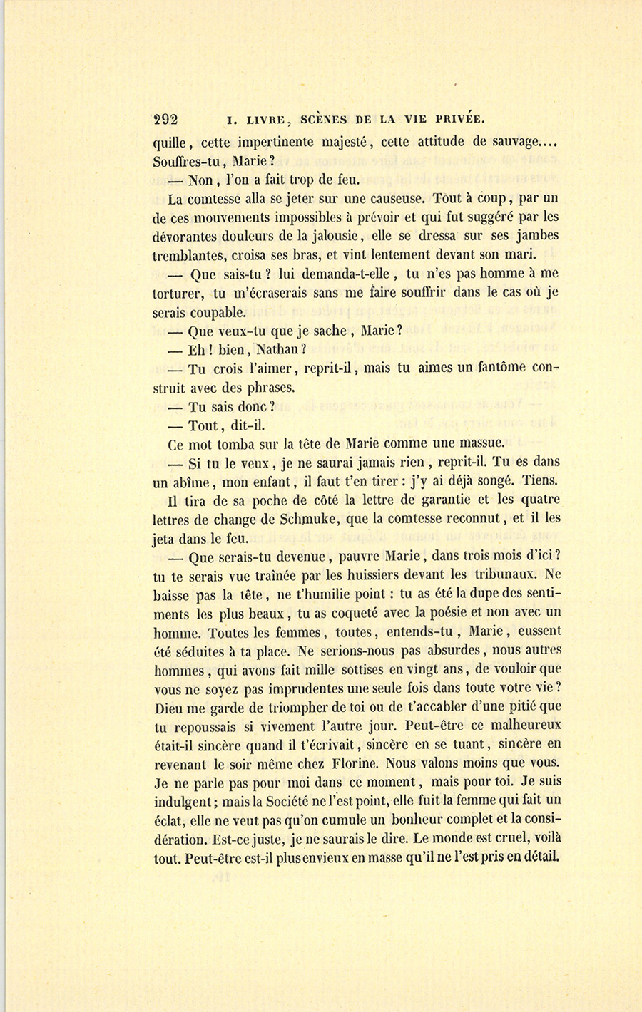 {p. 294} – Pour que tu ne soupçonnes pas ton mari de calomnier l’homme que tu as cru digne de toi, je te ferai rendre tes lettres par Florine elle-même.