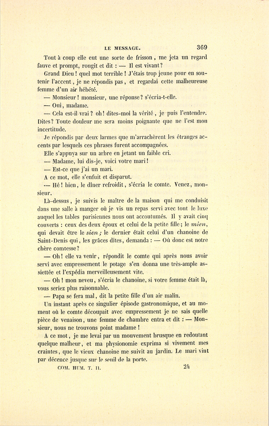 {p. 369} Tout à coup elle eut une sorte de frisson, me jeta un regard fauve et prompt, rougit et dit : – Il est vivant ?
