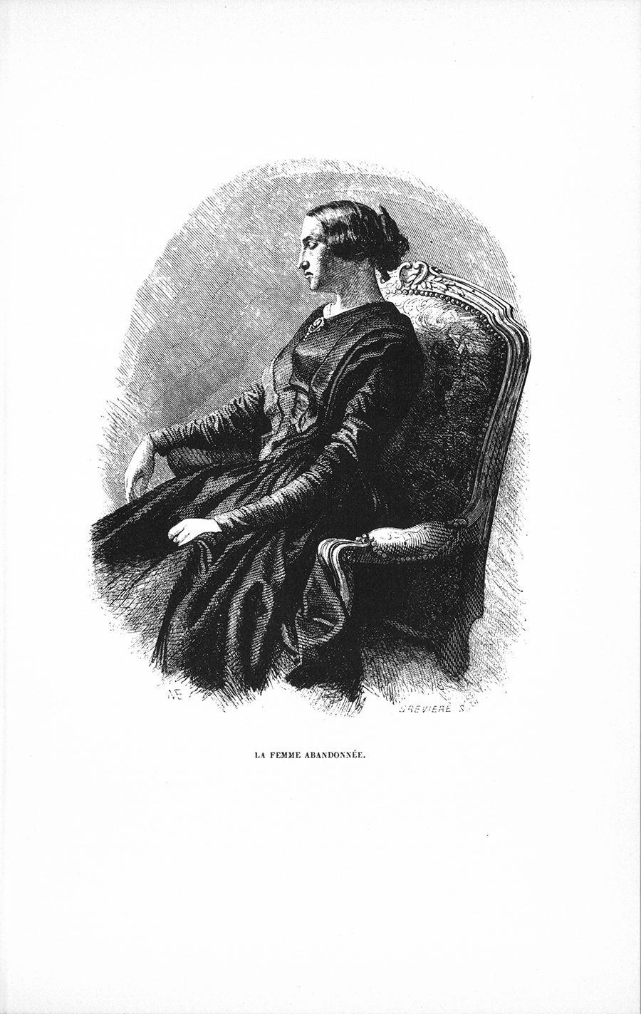 Madame la vicomtesse de Beauséant était blonde, blanche comme une blonde, et avait les yeux bruns. Elle présentait noblement son front, un front d’ange déchu qui s’enorgueillit de sa faute et ne veut point de pardon. Ses cheveux, abondants et tressés en hauteur au-dessus de deux bandeaux qui décrivaient sur ce front de larges courbes, ajoutaient encore à la majesté de sa tête. L’imagination retrouvait, dans les spirales de cette chevelure dorée, la couronne ducale de Bourgogne ; et, dans les yeux brillants de cette grande dame, tout le courage de sa maison ; le courage d’une femme forte seulement pour repousser le mépris ou l’audace, mais pleine de tendresse pour les sentiments doux. Les contours de sa petite tête, admirablement posée sur un long col blanc ; les traits de sa figure fine, ses lèvres déliées et sa physionomie mobile gardaient une expression de prudence exquise, une teinte d’ironie affectée qui ressemblait à de la ruse et à de l’impertinence. Il était difficile de ne pas lui pardonner ces deux péchés féminins en pensant à ses malheurs, à la passion qui avait failli lui coûter la vie, et qu’attestaient soit les rides qui, par le moindre mouvement, sillonnaient son front, soit la douloureuse éloquence de ses beaux yeux souvent levés vers le ciel. N’était-ce pas un spectacle imposant, et encore agrandi par la pensée, de voir dans un immense salon silencieux cette femme séparée du monde entier, et qui, depuis trois ans, demeurait au fond d’une petite vallée, loin de la ville, seule avec les souvenirs d’une jeunesse brillante, heureuse, passionnée, jadis remplie par des fêtes, par de constants hommages, mais maintenant livrée aux horreurs du néant ? Le sourire de cette femme annonçait une {p. 313} haute conscience de sa valeur. N’étant ni mère ni épouse, repoussée par le monde, privée du seul cœur qui pût faire battre le sien sans honte, ne tirant d’aucun sentiment les secours nécessaires à son âme chancelante, elle devait prendre sa force sur elle-même, vivre de sa propre vie, et n’avoir d’autre espérance que celle de la femme abandonnée : attendre la mort, en hâter la lenteur malgré les beaux jours qui lui restaient encore. Se sentir destinée au bonheur, et périr sans le recevoir, sans le donner ?… une femme ! Quelles douleurs ! Monsieur de Nueil fit ces réflexions avec la rapidité de l’éclair, et se trouva bien honteux de son personnage en présence de la plus grande poésie dont puisse s’envelopper une femme. Séduit par le triple éclat de la beauté, du malheur et de la noblesse, il demeura presque béant, songeur, admirant la vicomtesse, mais ne trouvant rien à lui dire.