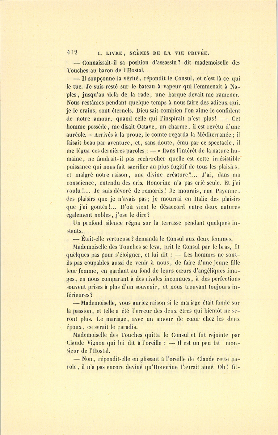 {p. 412} – Connaissait-il sa position d’assassin ? dit mademoiselle des Touches au baron de l’Hostal.