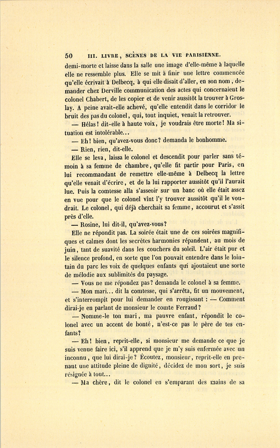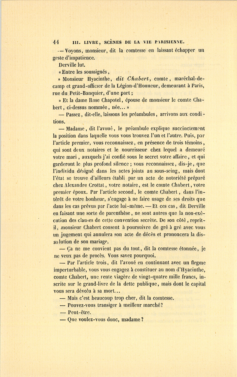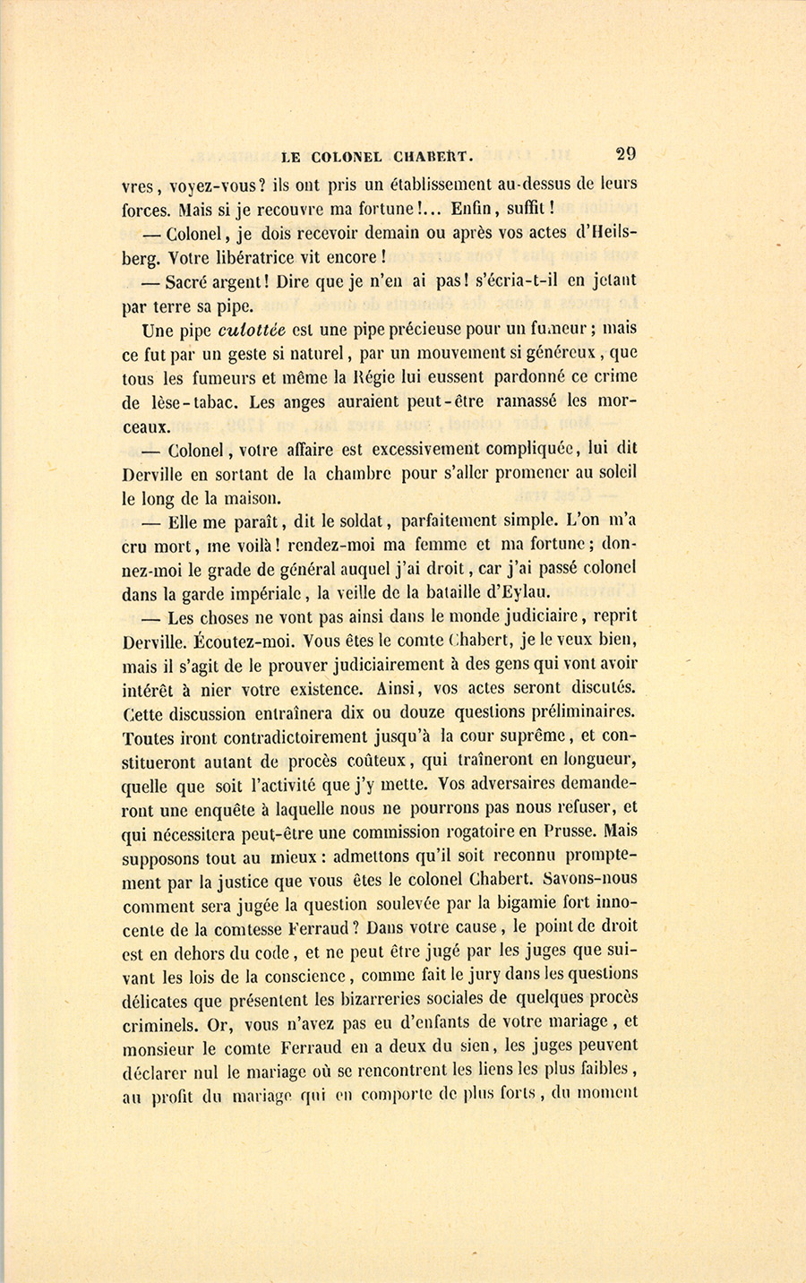 {p. 53} – Monsieur, lui dit Delbecq, je ne vous conseille pas de signer trop vite. À votre place je tirerais au moins trente mille livres de rente de ce procès-là, car madame les donnerait.