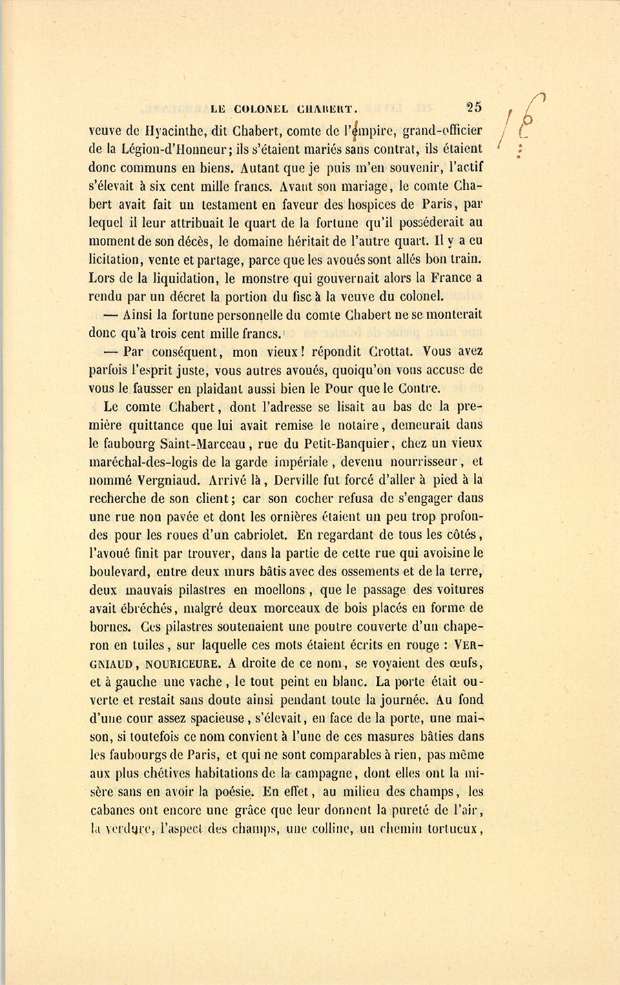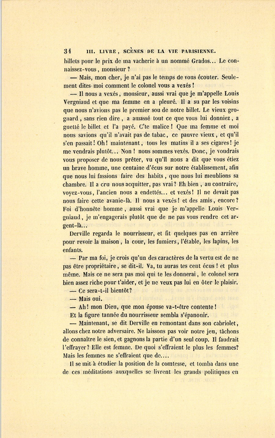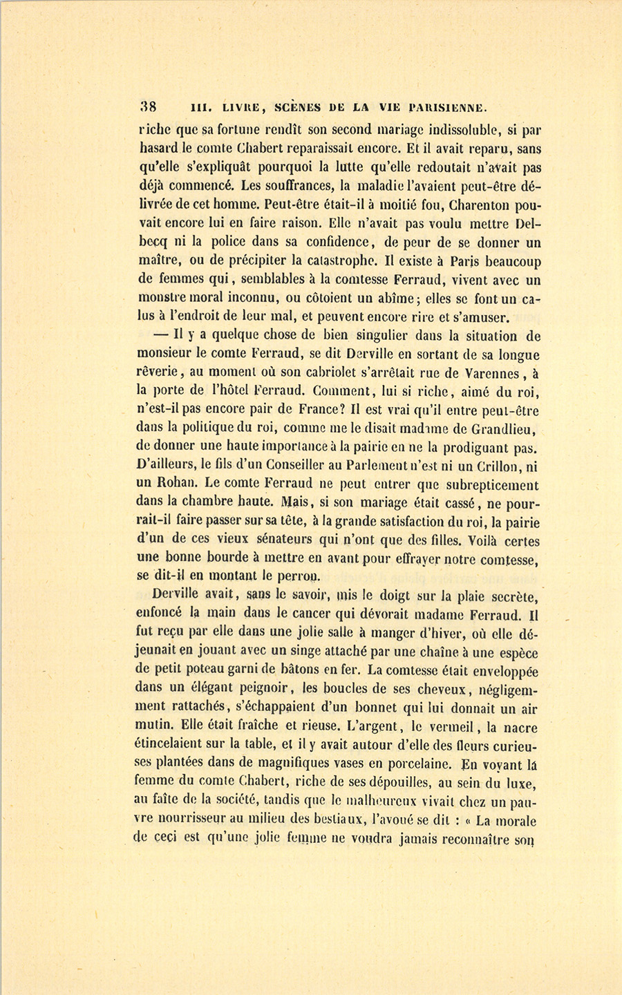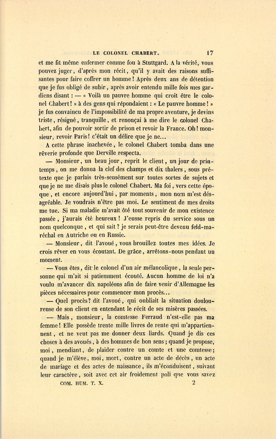 {p. 53} – Monsieur, lui dit Delbecq, je ne vous conseille pas de signer trop vite. À votre place je tirerais au moins trente mille livres de rente de ce procès-là, car madame les donnerait.