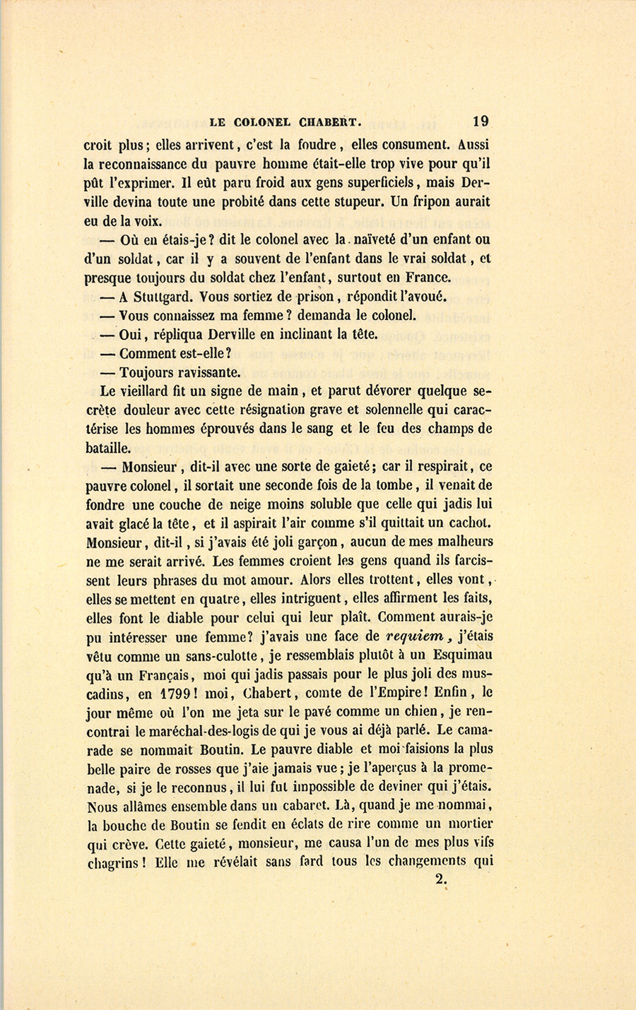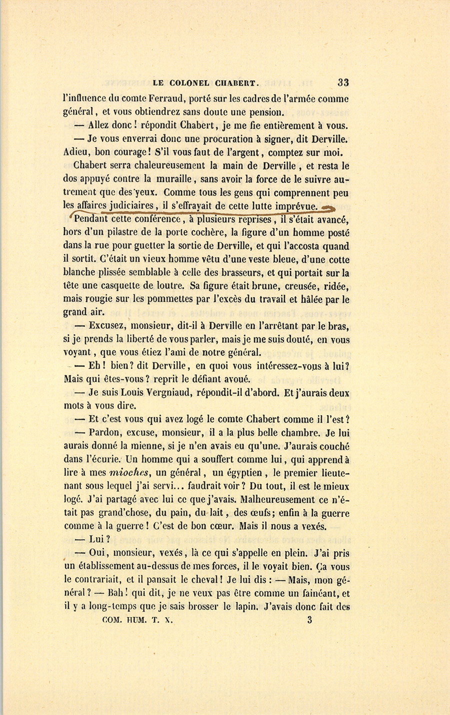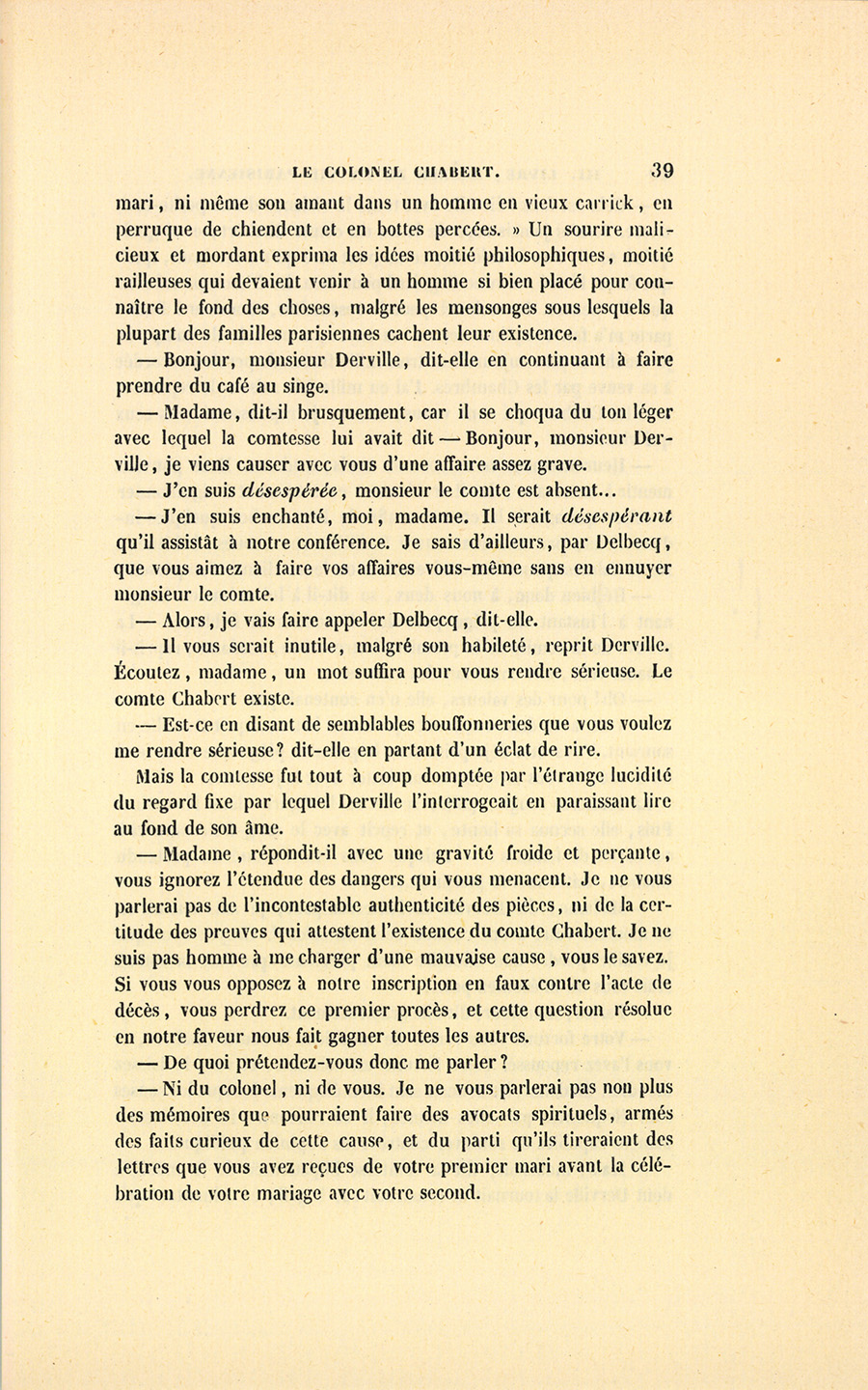– Si c’eût été le colonel Chabert, est-ce qu’il n’aurait pas chaussé le bout de son pied dans le postérieur de ce farceur de Simonnin quand il a fait le sourd ? dit Desroches en regardant cette observation comme plus concluante que celle de Godeschal.