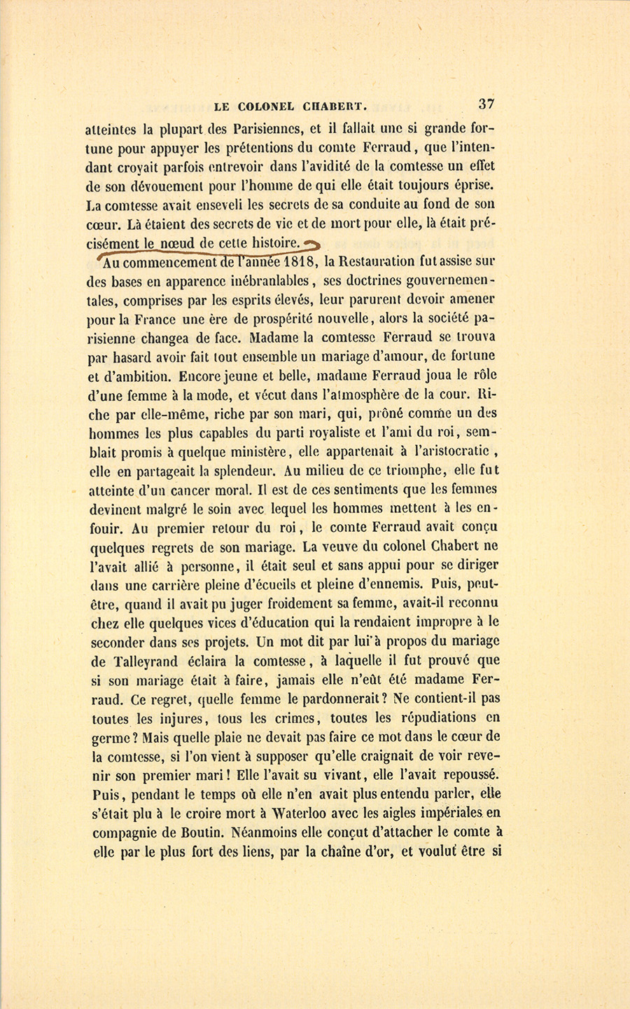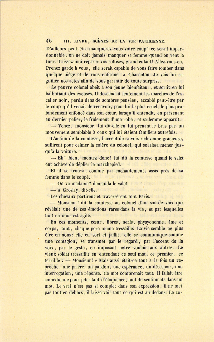 – Monsieur ! dit la comtesse au colonel d’un son de voix qui révélait une de ces émotions rares dans la vie, et par lesquelles tout en nous est agité.