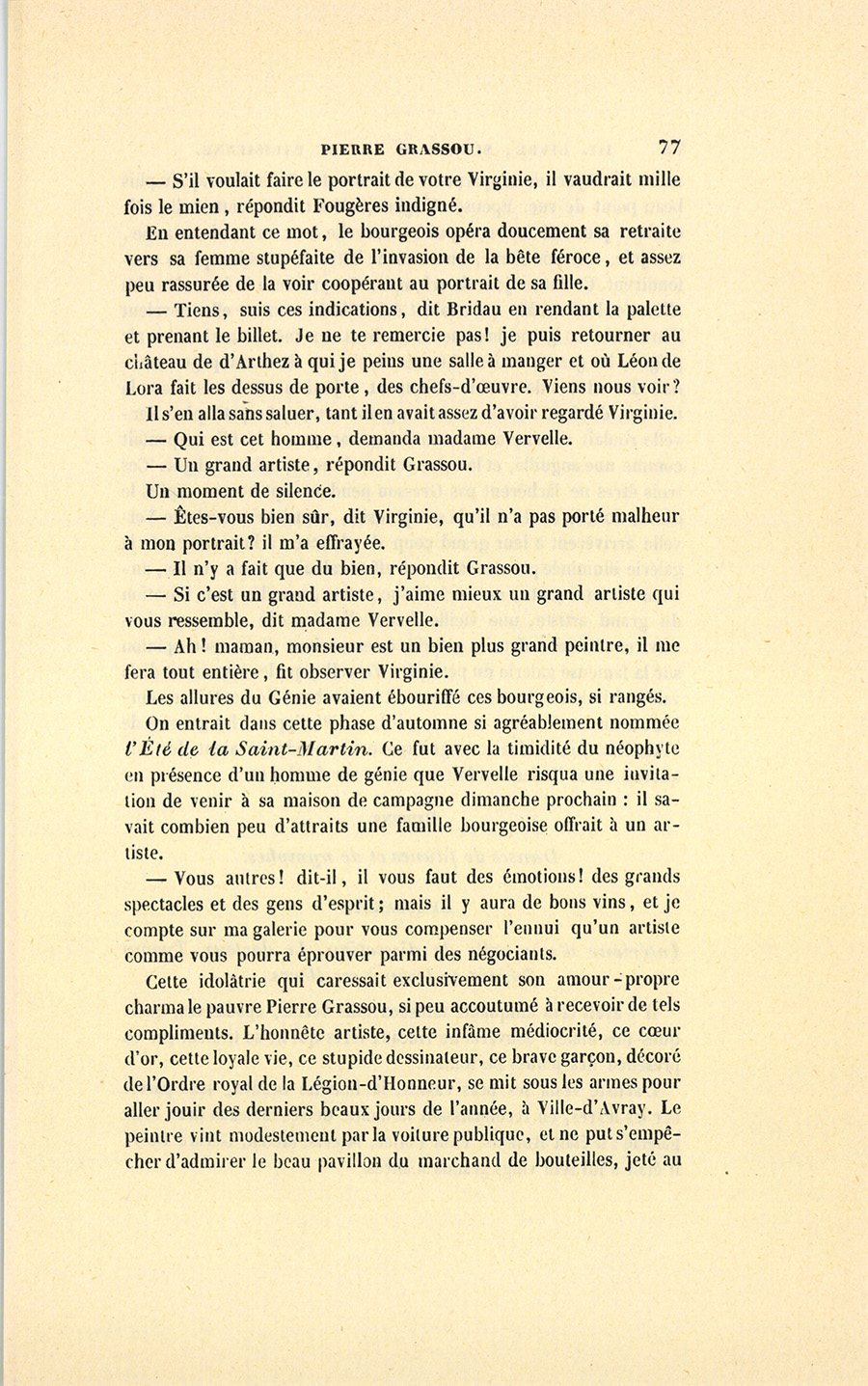 {p. 77} – S’il voulait faire le portrait de votre Virginie, il vaudrait mille fois le mien, répondit Fougères indigné.