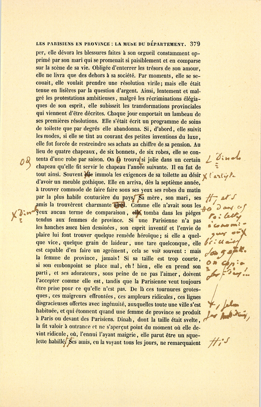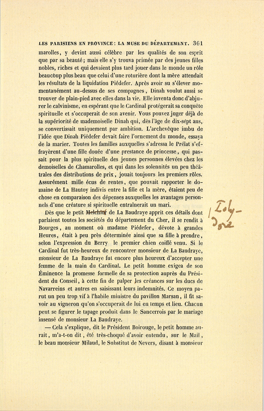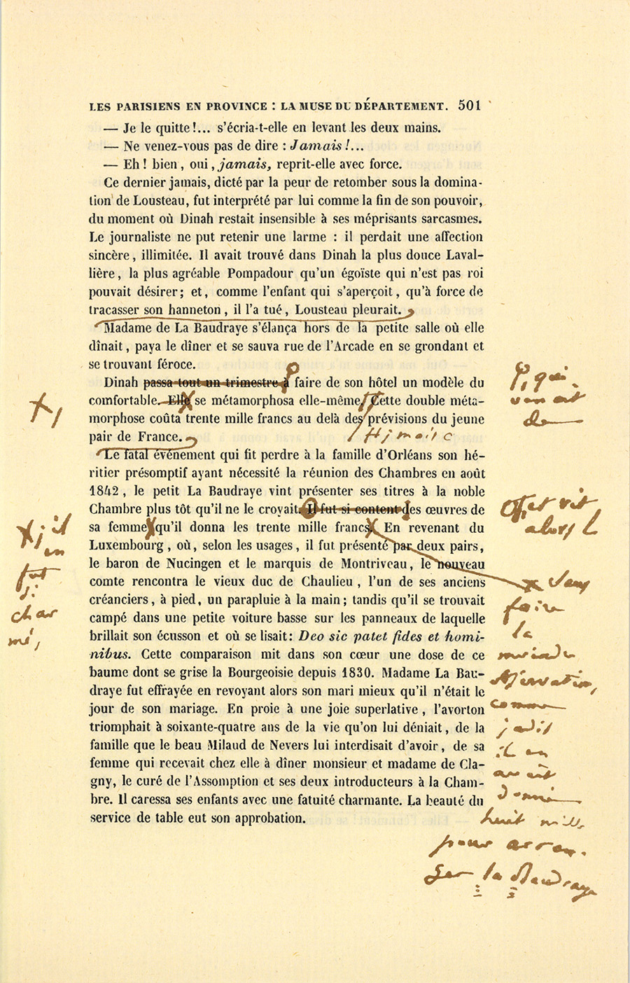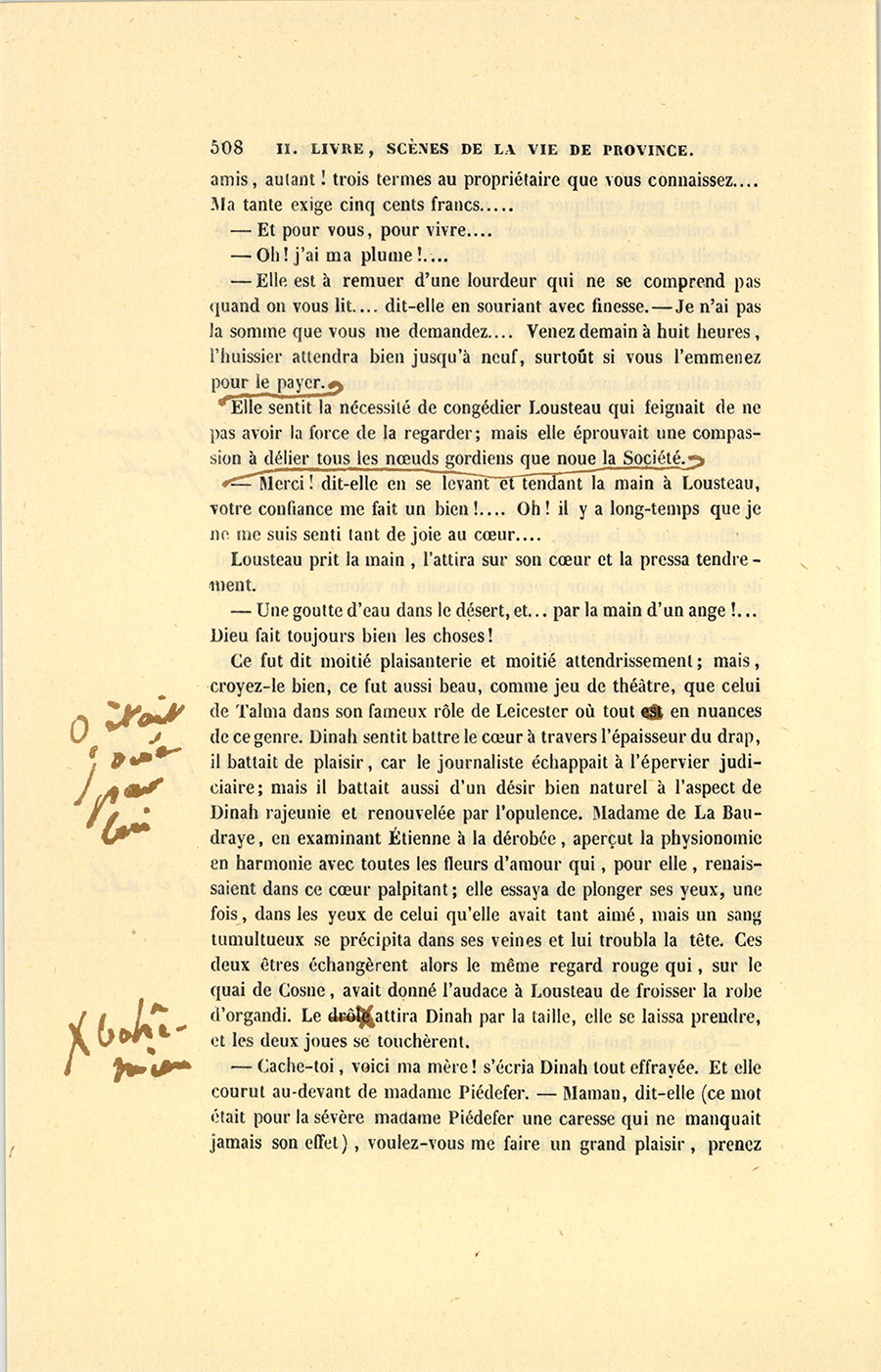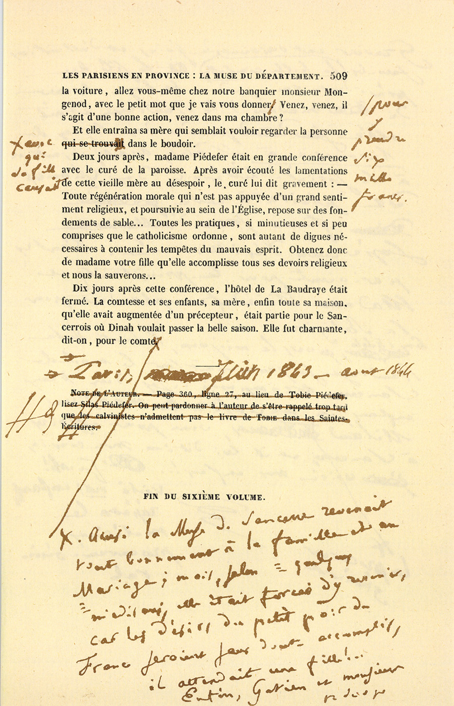 Il se jouait, en effet, dans le ménage de madame de La Baudraye une tragi-comédie en harmonie avec ses luttes relativement à la fortune, avec ses transformations successives, et dont, après l’abbé {p. 382} Duret, monsieur de Clagny seul eut connaissance, lorsque Dinah, par désœuvrement, par vanité peut être, lui livra le secret de sa gloire anonyme.