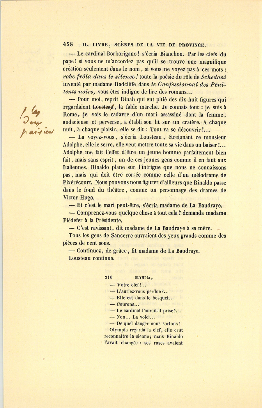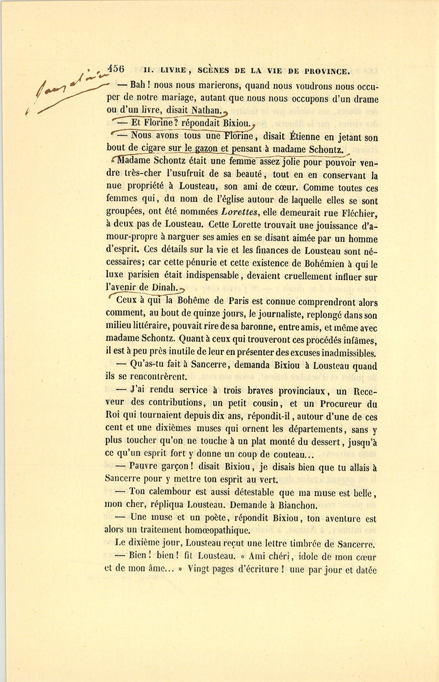 – Aussi, dans la perfide Albion du Constitutionnel, s’écria Lousteau pour réprimer par une épigramme cette prestesse de {p. 396} langue, y a-t-il chance de rencontrer de charmantes femmes sur tous les points du royaume.