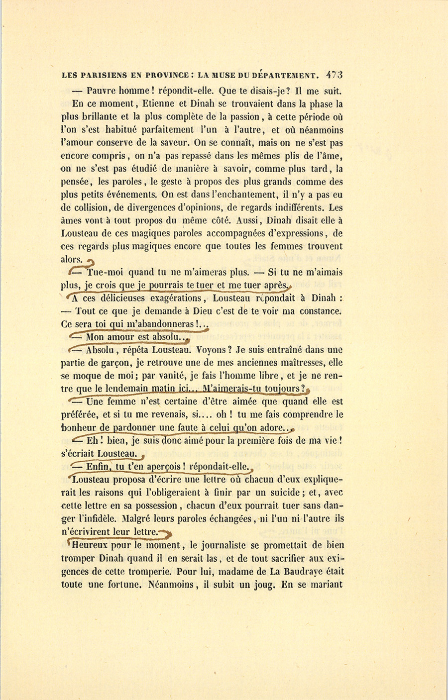 – Pourquoi, dit Lousteau, ne pas finir comme nous aurions dû commencer, cacher à tous les yeux notre amour, et nous voir secrètement ?