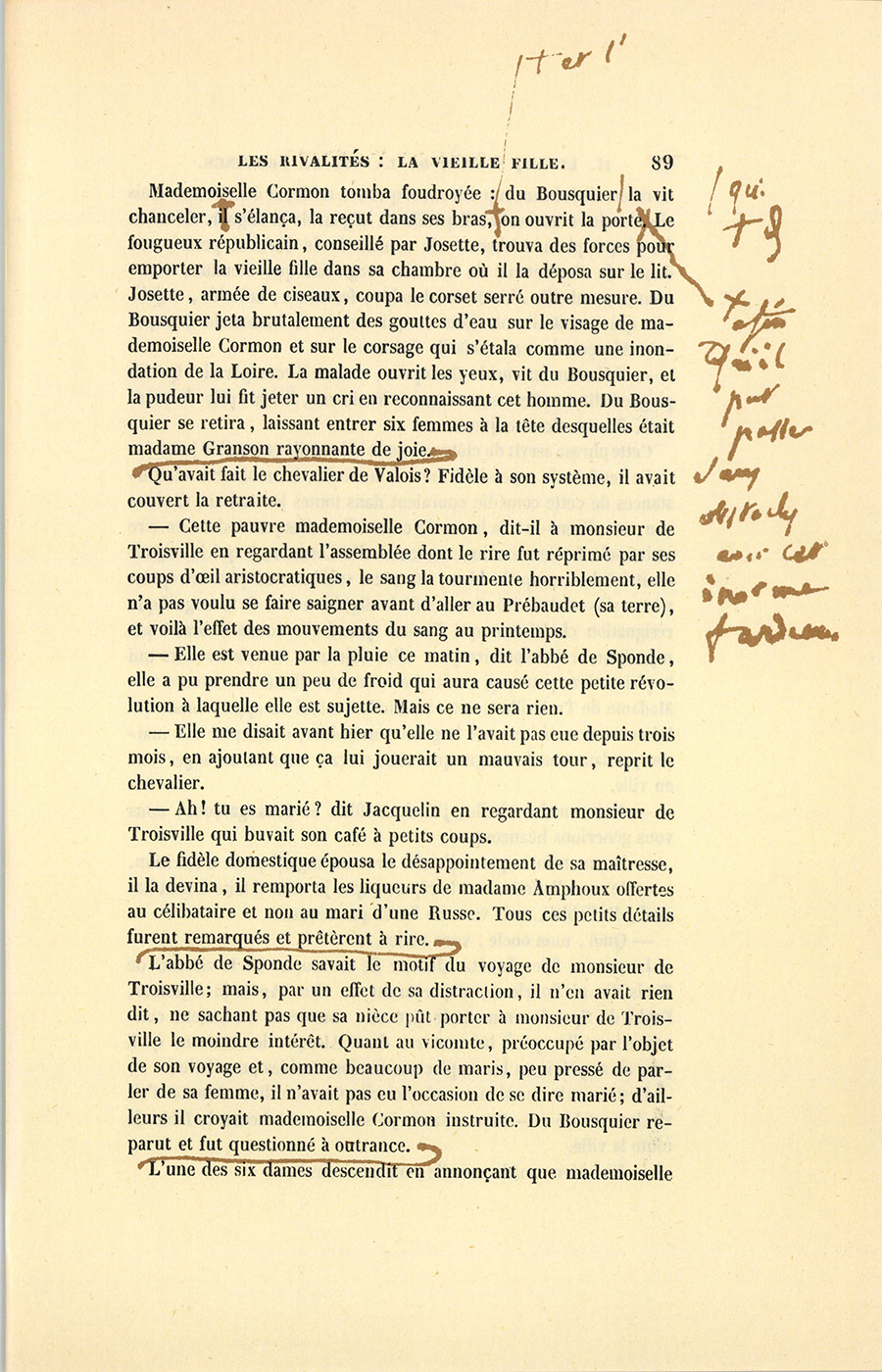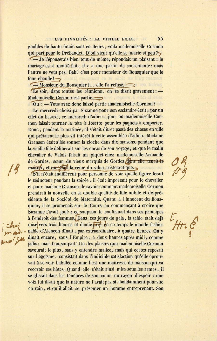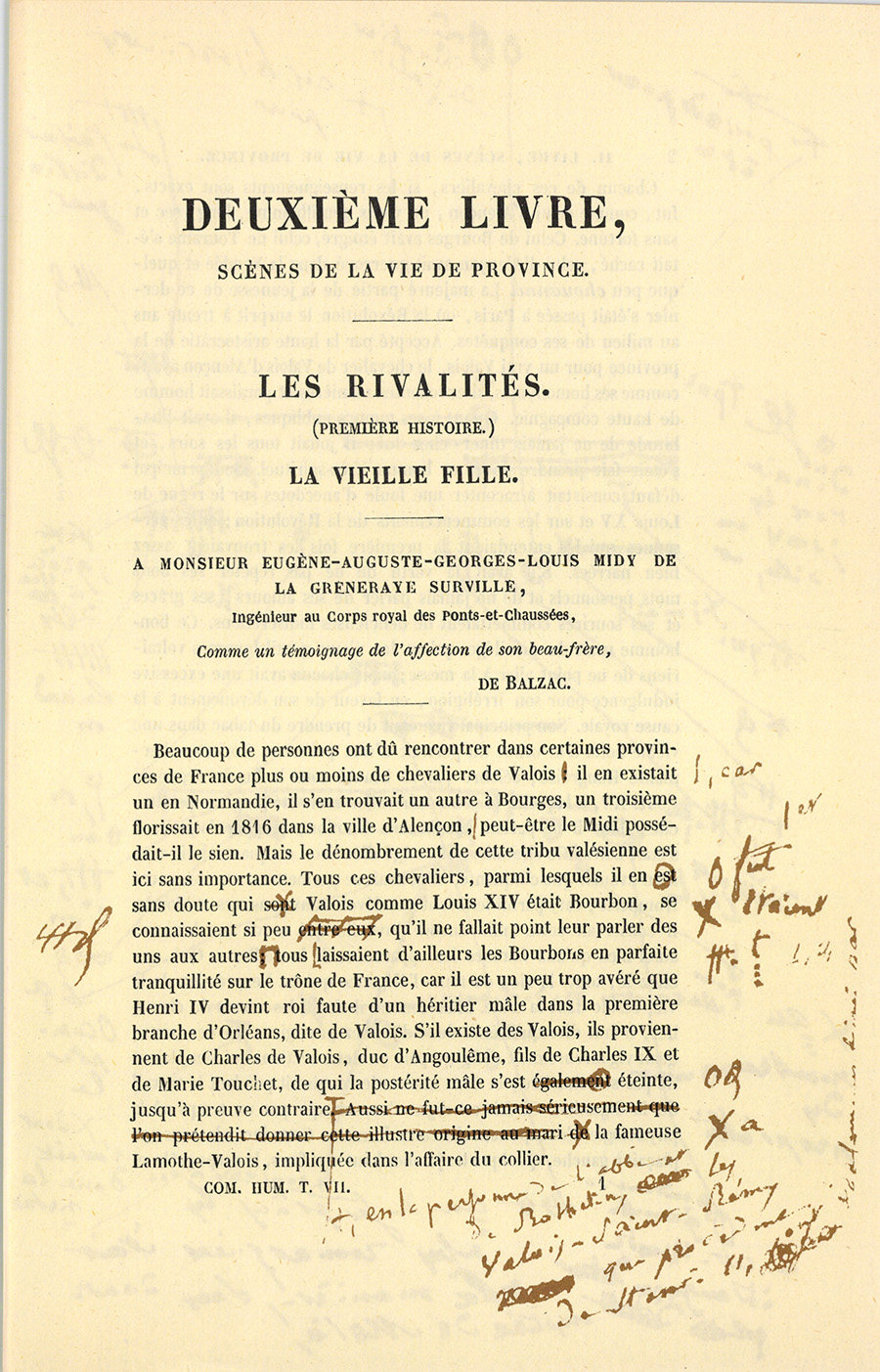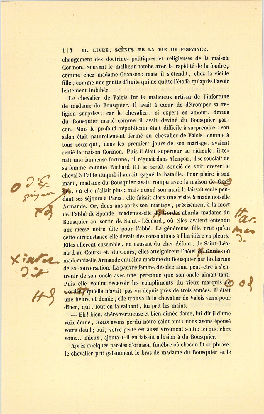 – Ma foi, dit du Bousquier, si le vicomte de Troisville en veut, elle est à lui pour quarante mille francs. Elle me devient fort {p. 94} inutile ! Si mademoiselle me le permet… Il faut que cela se sache. – Mademoiselle, puis-je le dire ? – Oui ! – Hé ! bien, soyez le premier, mon cher chevalier, à qui j’apprenne… (mademoiselle Cormon baissa les yeux) l’honneur, dit l’ancien fournisseur, la faveur que me fait mademoiselle, et que j’ai gardée sous le secret depuis quelques mois. Nous nous marions dans quelques jours, le contrat est rédigé, nous le signerons demain. Vous comprenez que ma maison de la19 rue du Cygne me devient inutile. Je cherchais sous main des acquéreurs, et l’abbé de Sponde, qui le savait, a naturellement conduit chez moi monsieur de Troisville…
