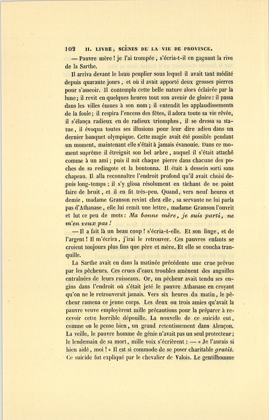 {p. 102} – Pauvre mère ! je l’ai trompée, s’écria-t-il en gagnant la rive de la Sarthe.