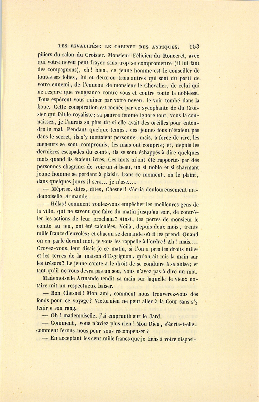 – Hé ! bien, dit mademoiselle Armande, j’ai prié Chesnel de venir ce soir. Croiriez-vous, Chevalier, que, depuis le jour où Chesnel m’a proposé d’épouser ce misérable du Croisier…