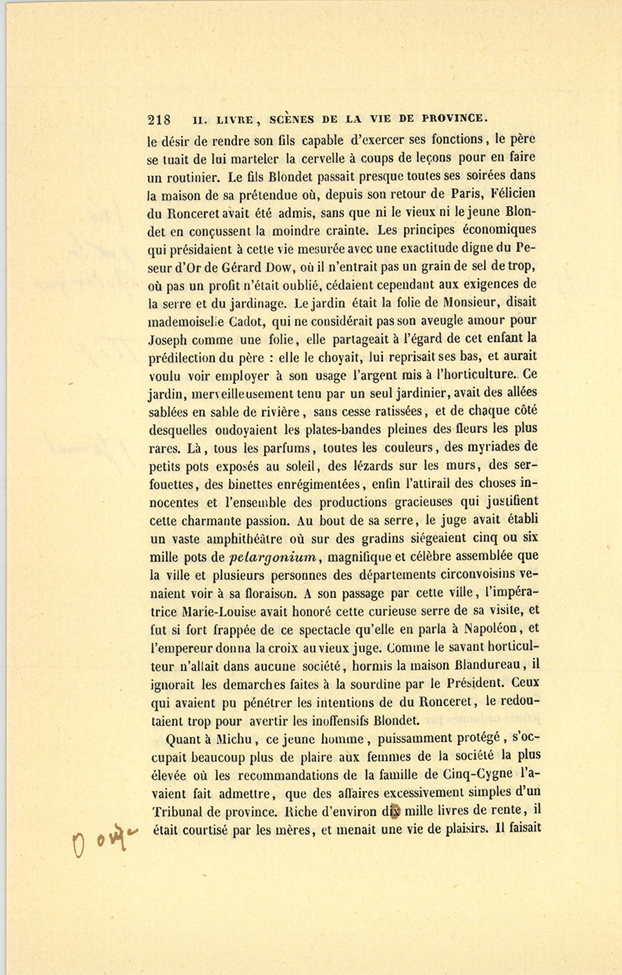 – Monsieur, passez là, vous verrez mes pélargonium28, un spectacle magique à la floraison. Pourquoi, dit-il à madame Camusot, me parlez-vous de ces affaires devant votre cousin ?
