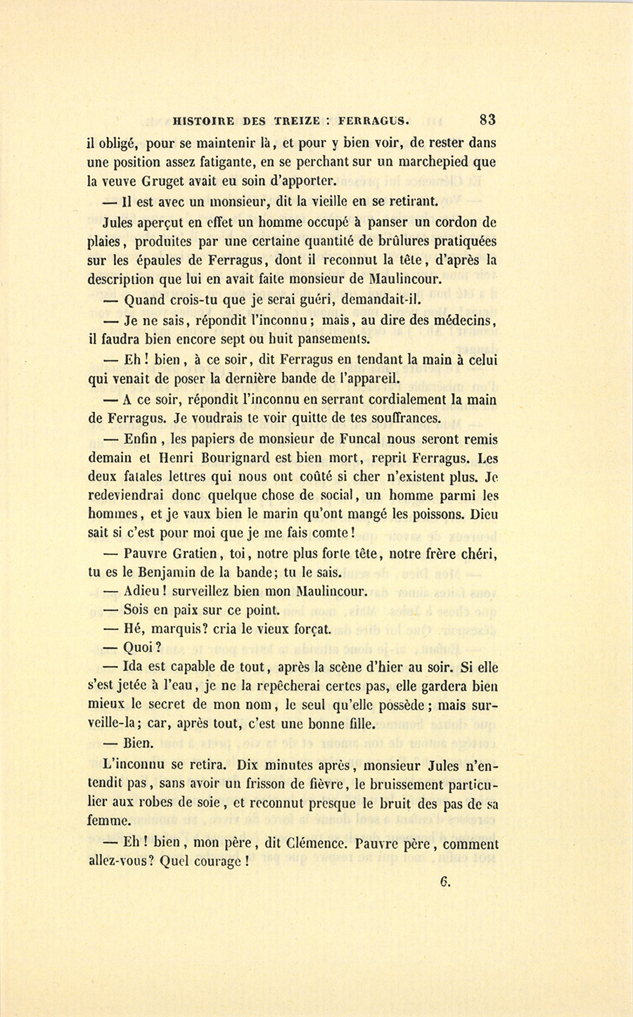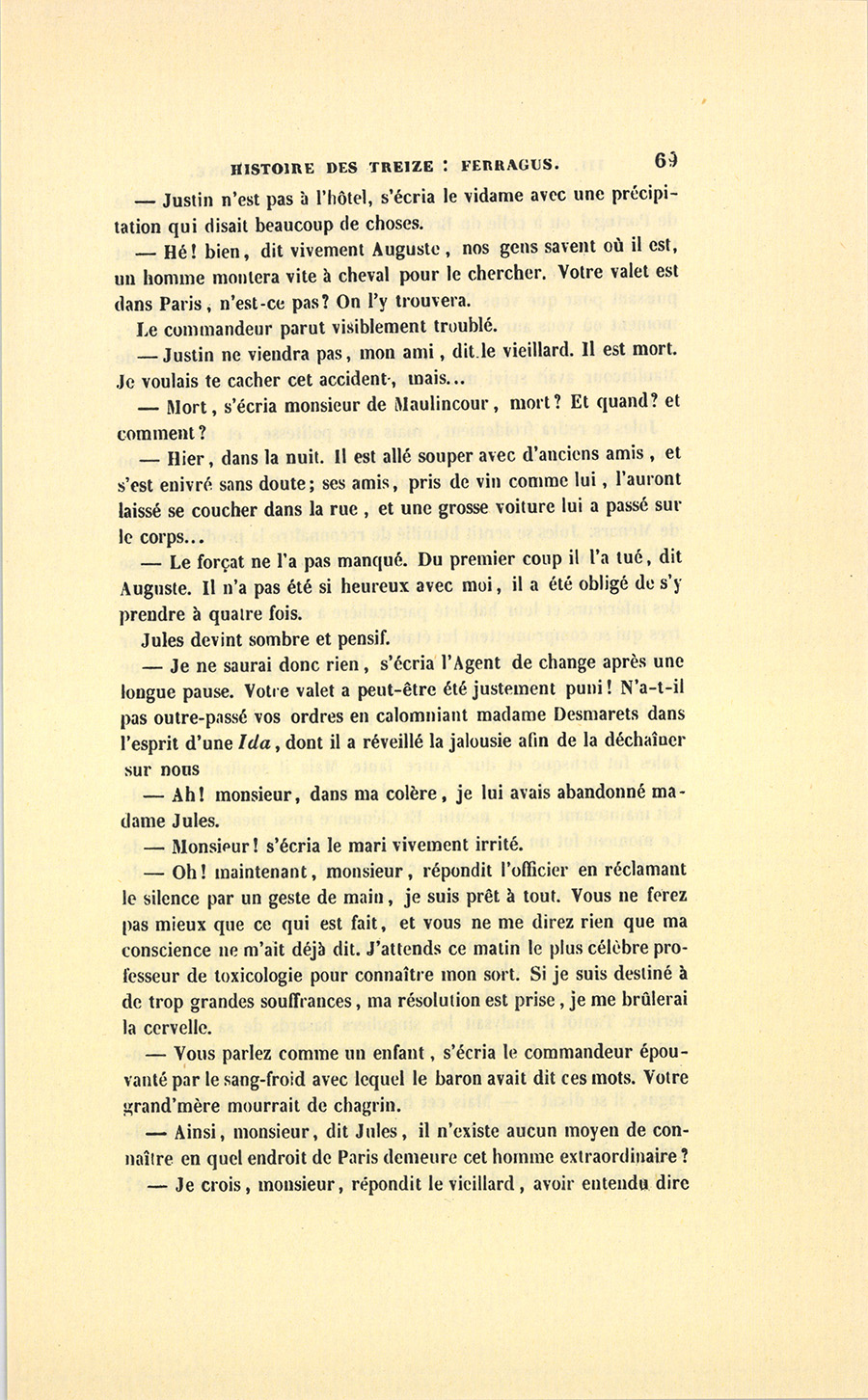 – C’est lui, dit Jules en découvrant enfin dans ce débris humain Ferragus XXIII, chef des Dévorants. Comme il l’aimait ! ajouta-t-il après une pause. Marchez donc, postillon ! cria-t-il.
