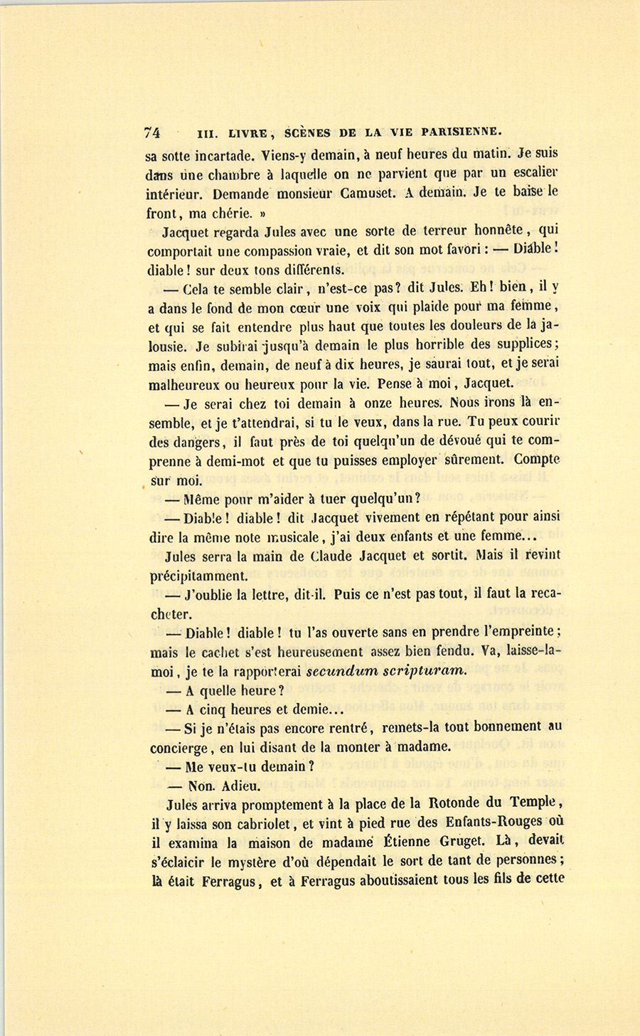 – Monsieur, lui dit Jacquet en lui frappant sur le bras, la {p. 104} personne dont je vous parle est madame Jules Desmarets, la femme de l’Agent de change.