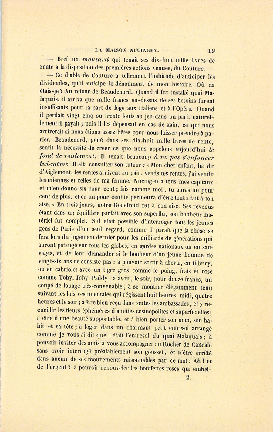 {p. 19} – Bref un moutard qui tenait ses dix-huit mille livres de rente à la disposition des premières actions venues, dit Couture.
