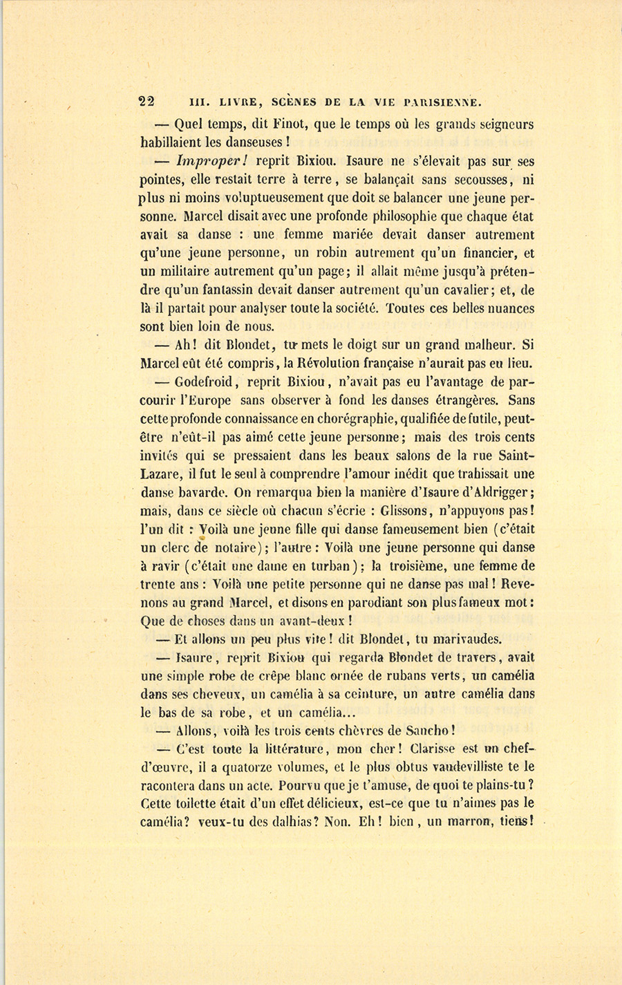 {p. 22} – Quel temps, dit Finot, que le temps où les grands seigneurs habillaient les danseuses !