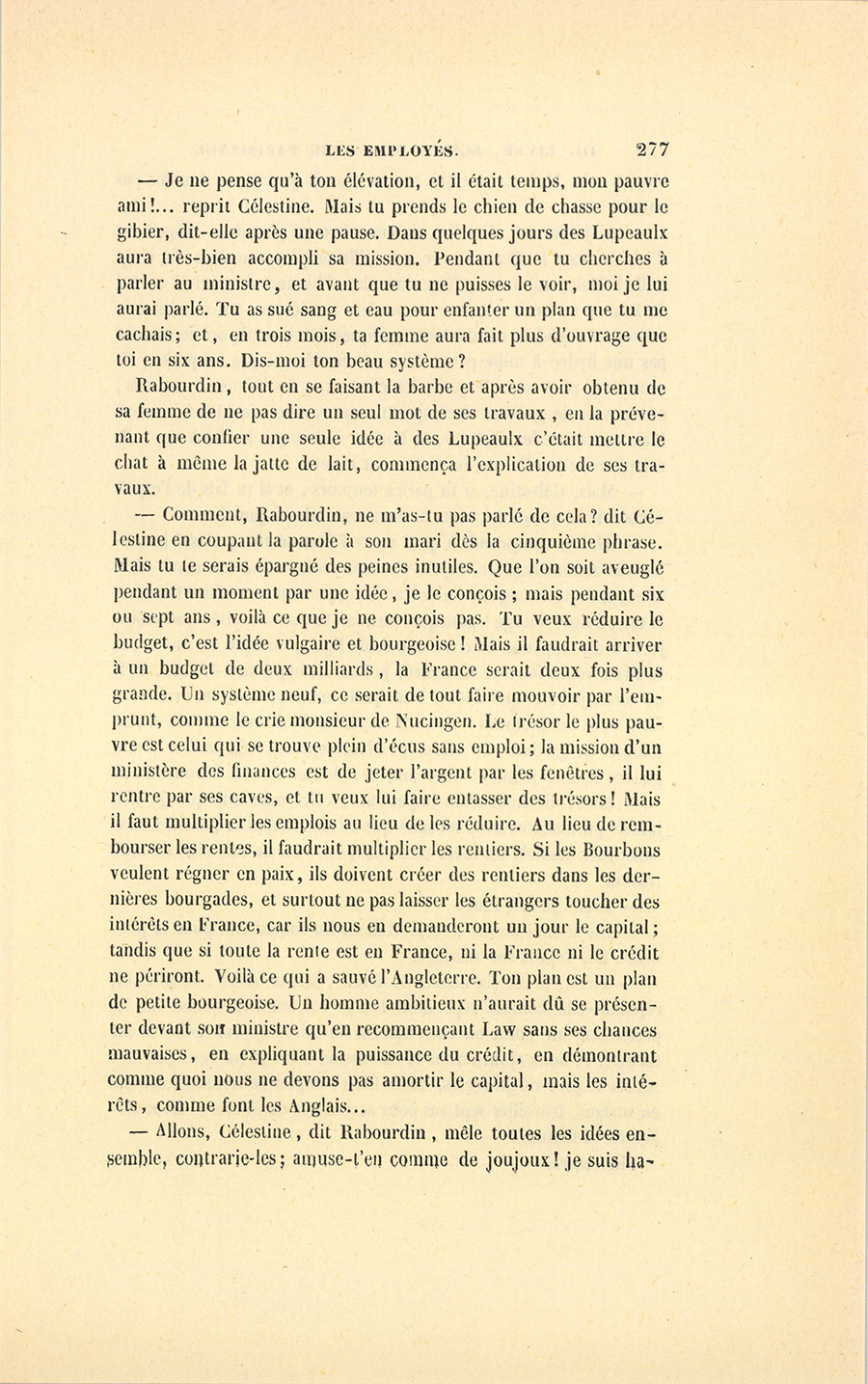 – L’invasion de 1814 et de 1815, disait Rabourdin à ses amis, a fondé en France et démontré une institution que ni Law ni Napoléon n’ont pu établir : le crédit.