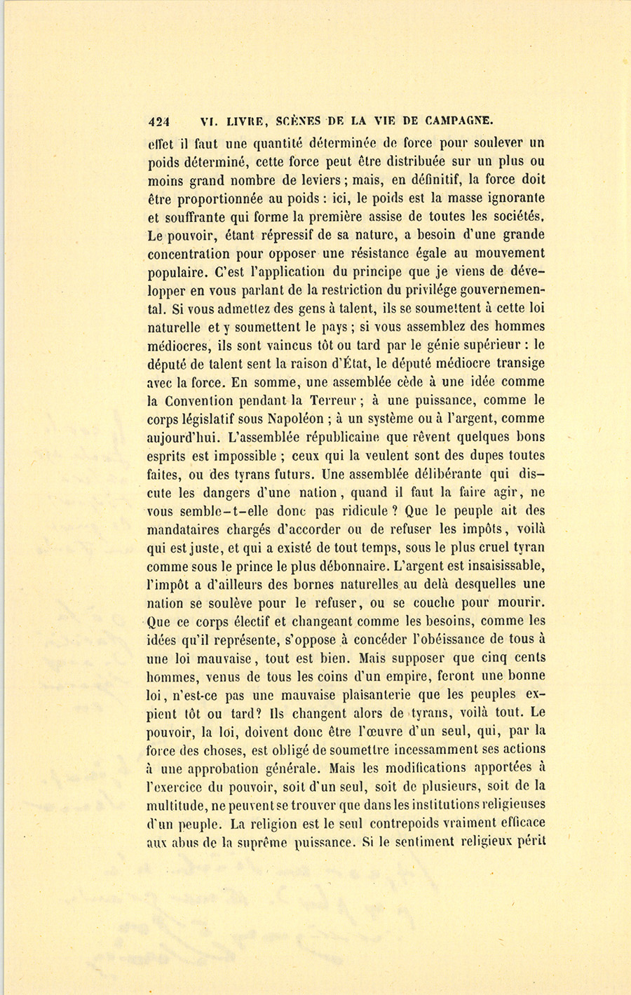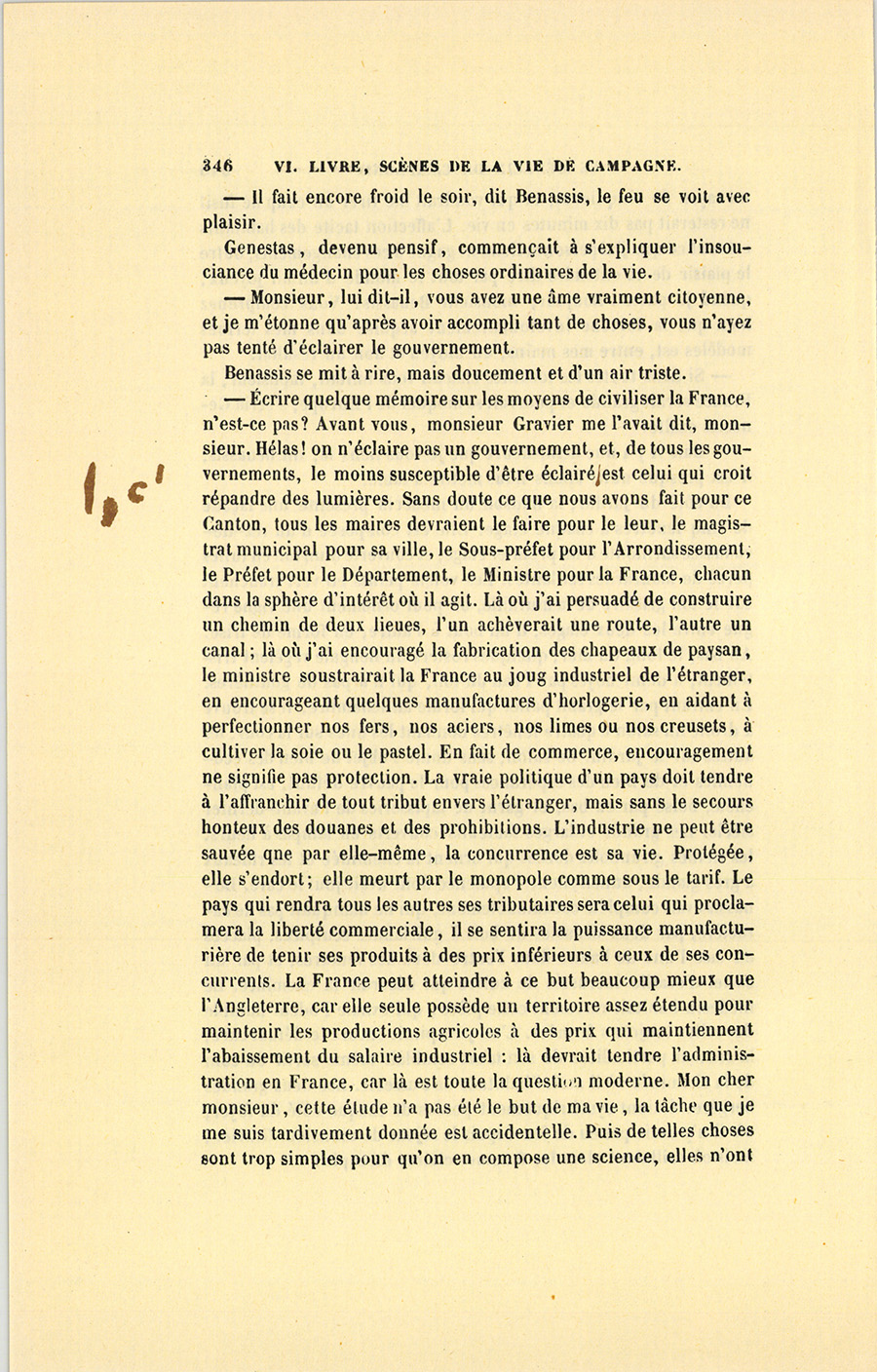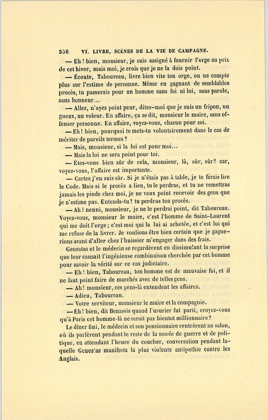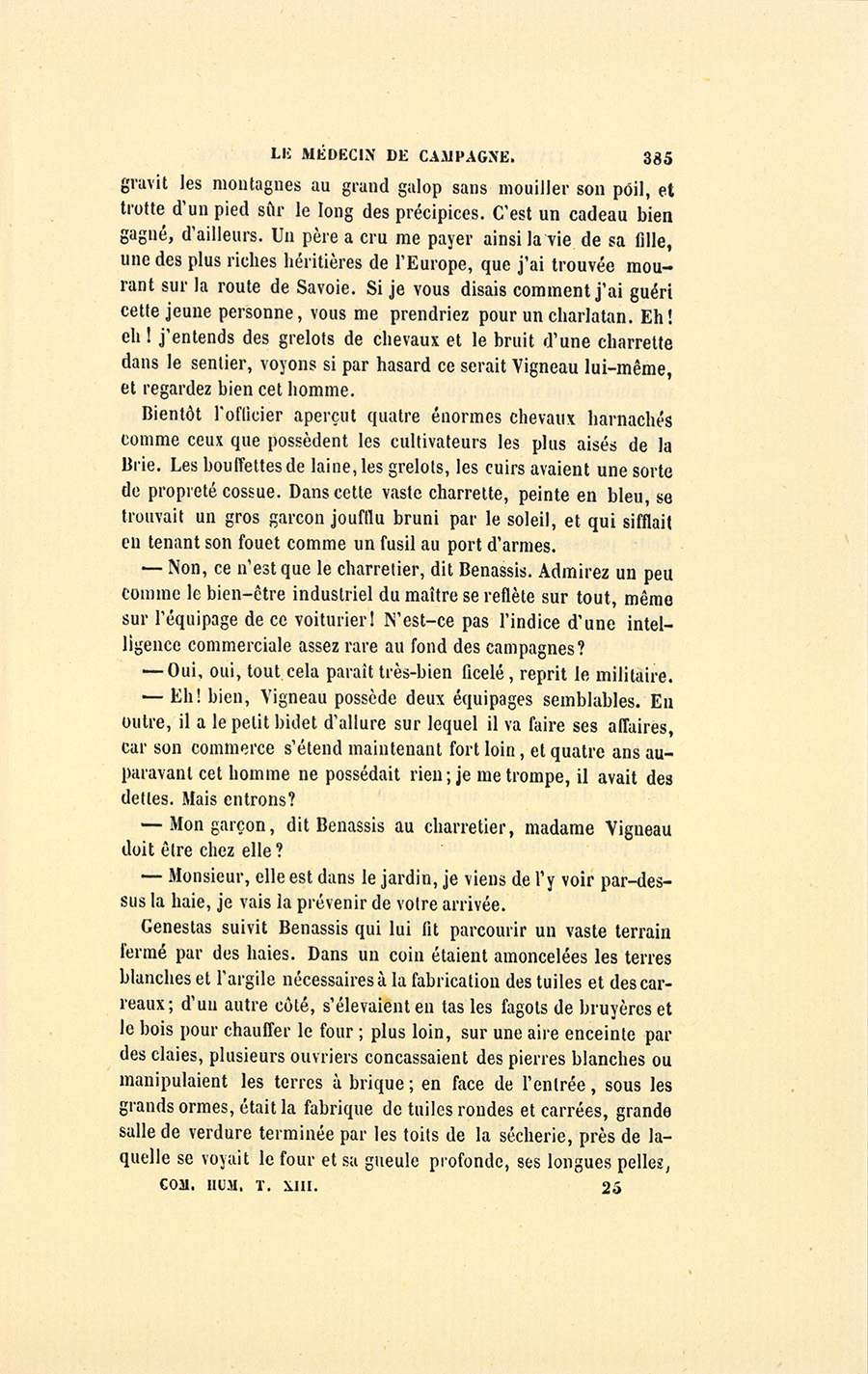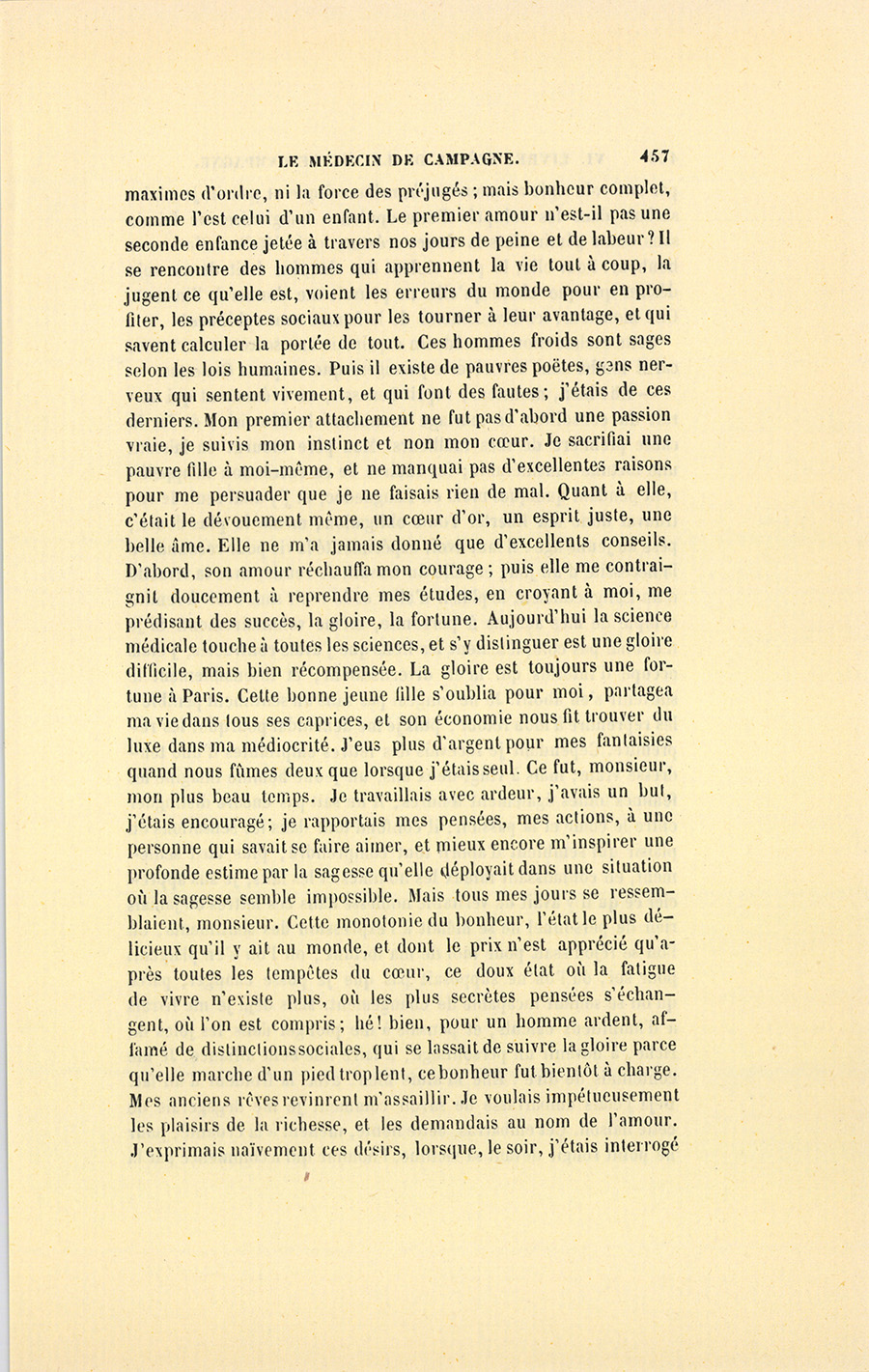 – Monsieur, voilà bien ce que nous dit monsieur Benassis ; mais si d’autres prennent les enfants au même prix, faut bien en passer par là. N’en a pas qui veut des enfants ! On a encore besoin de la {p. 313} croix et de la bannière pour en obtenir. Quand nous leur donnerions notre lait pour rien, il ne nous coûte guère. D’ailleurs, monsieur, trois francs, c’est une somme. Voilà quinze francs de trouvés, sans les cinq livres de savon. Dans nos cantons, combien faut-il donc s’exterminer le tempérament avant d’avoir gagné dix sous par jour.