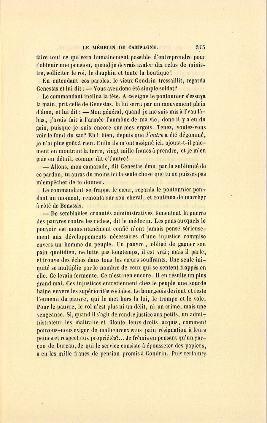– En cet endroit la civilisation est peu avancée, les religions du travail y sont en pleine vigueur, et la mendicité n’y a pas encore pénétré, pensa Genestas.