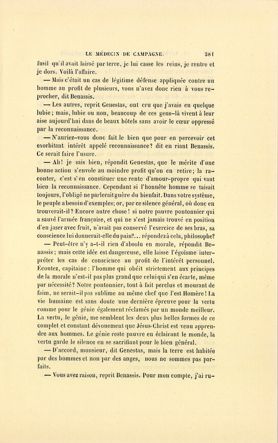 – Si vous êtes riche, répondit Benassis, vous paierez bien ; sinon, je ne veux rien.