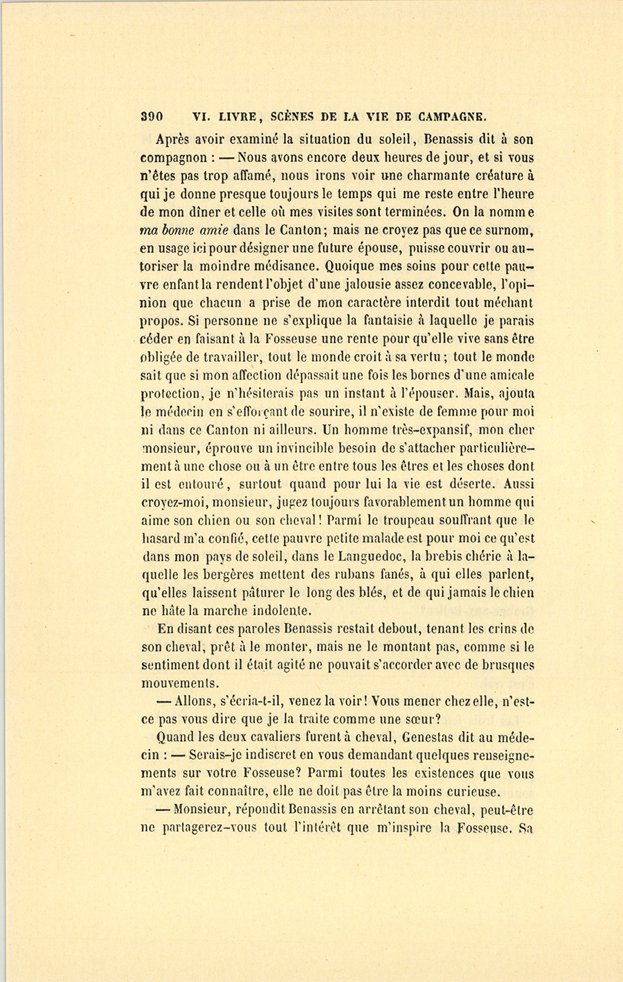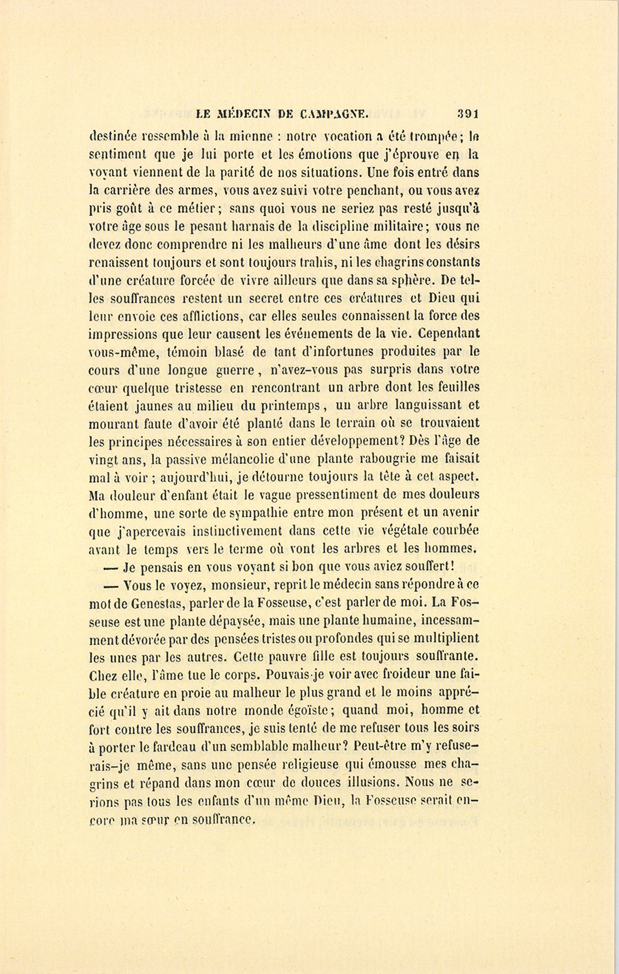 Après être demeuré silencieux pendant un moment, et s’être approché de la Fosseuse qui ne l’entendit pas, Genestas dit au curé : – Dès que j’aurai ma retraite, je viendrai finir mes jours parmi vous.