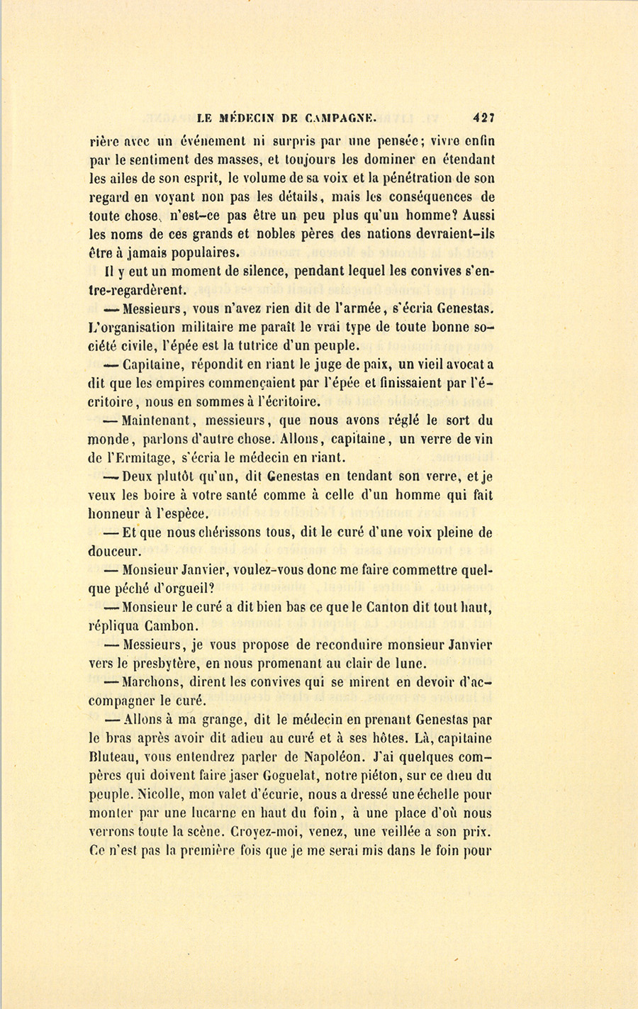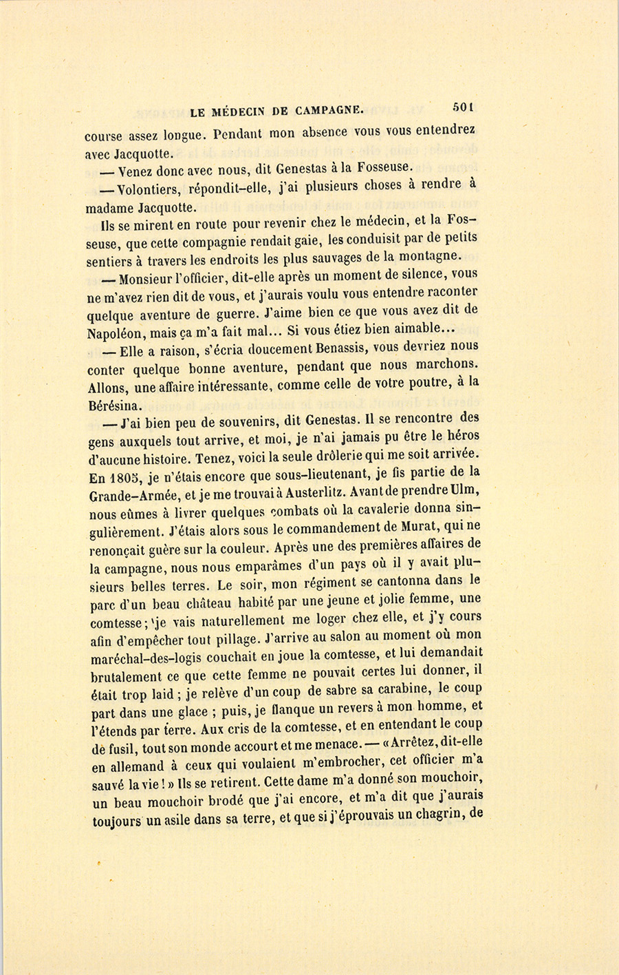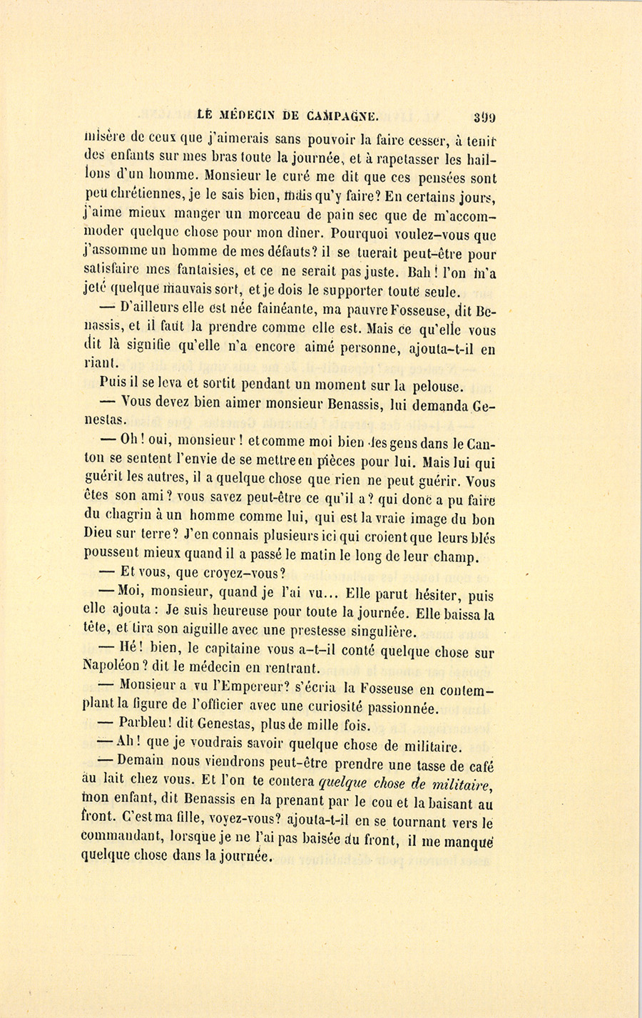 – Commandant, dit Benassis, vous savez à quel prix vous recevez ici l’hospitalité. Vous devez conter à ma Fosseuse quelque chose de militaire.