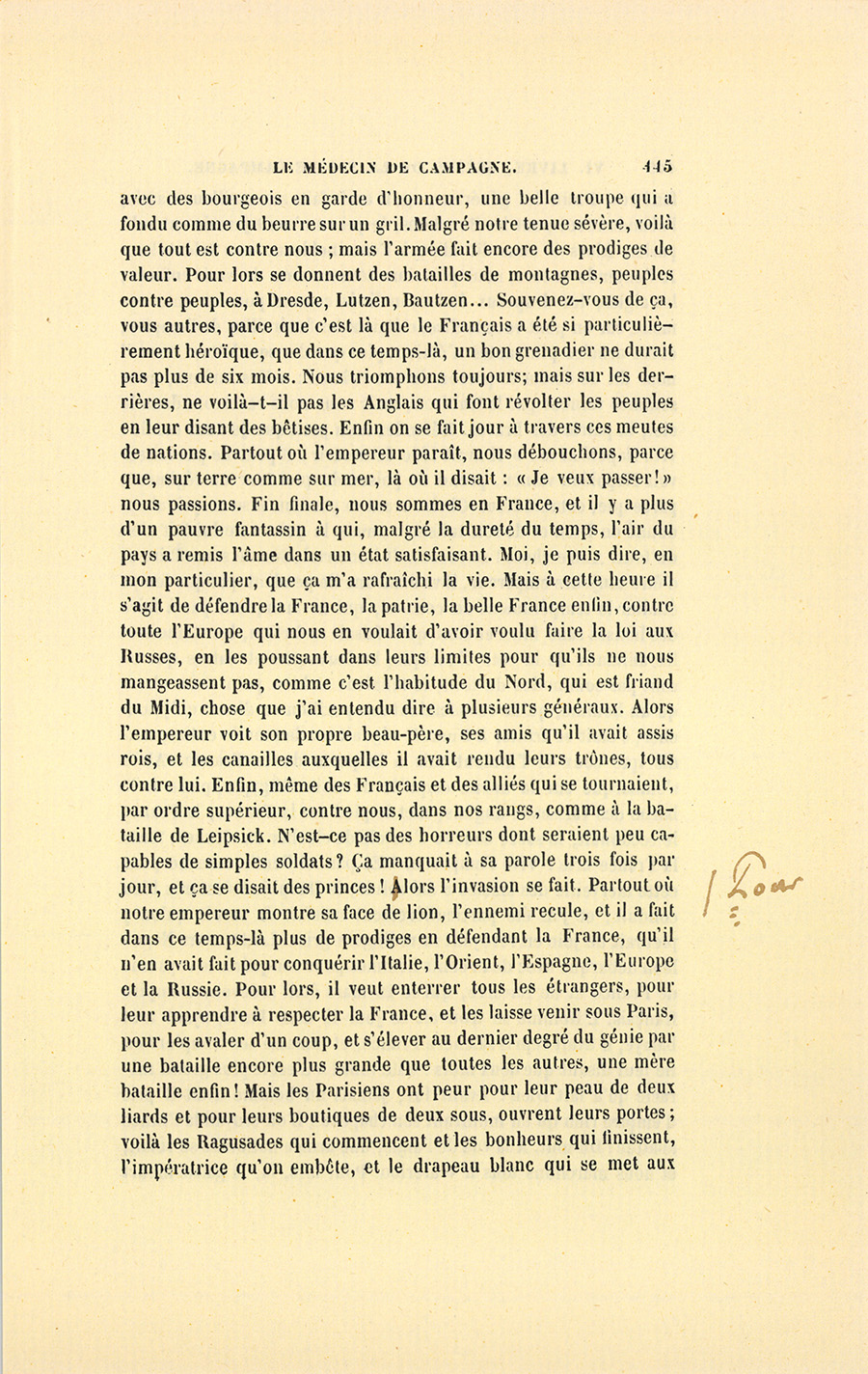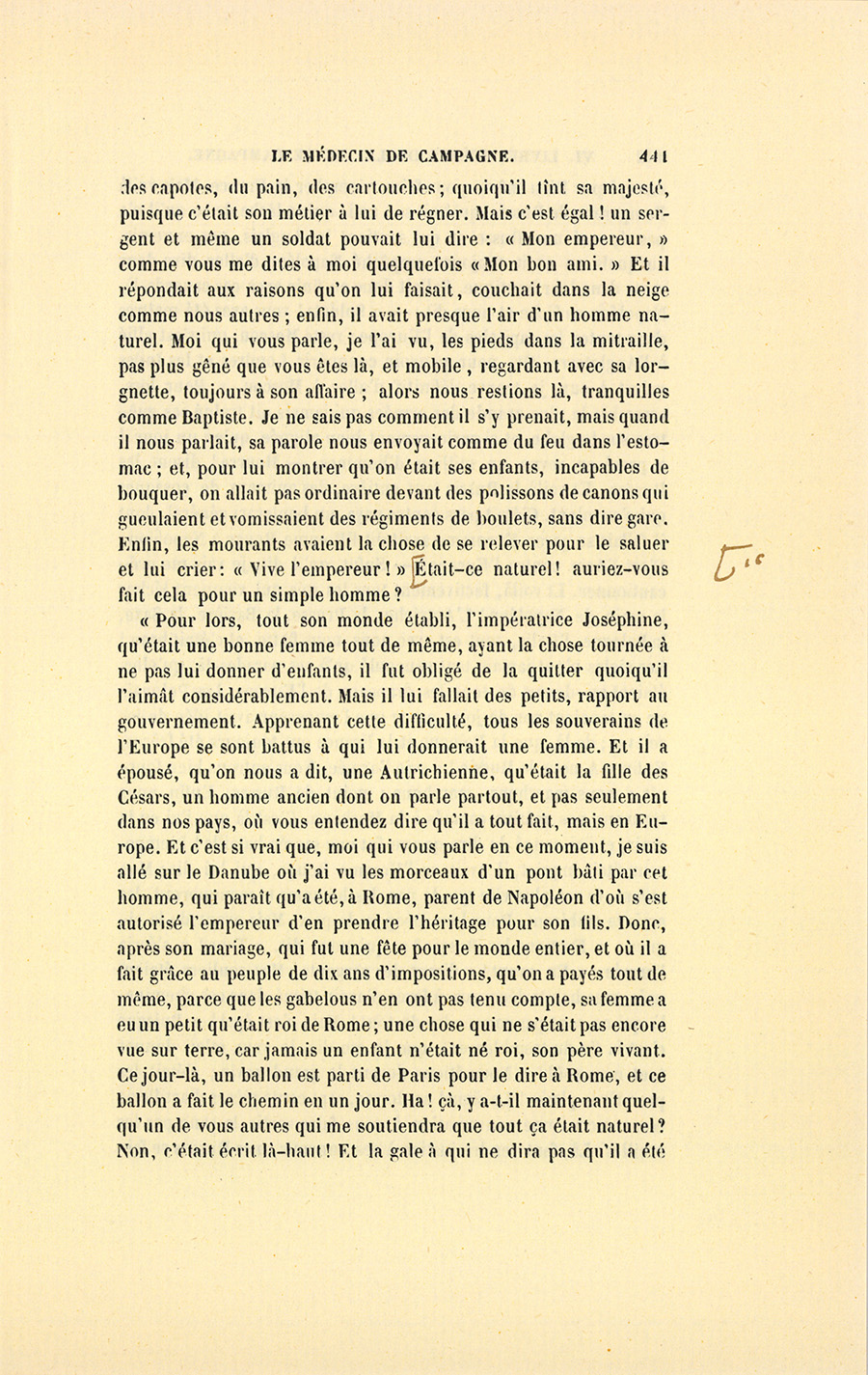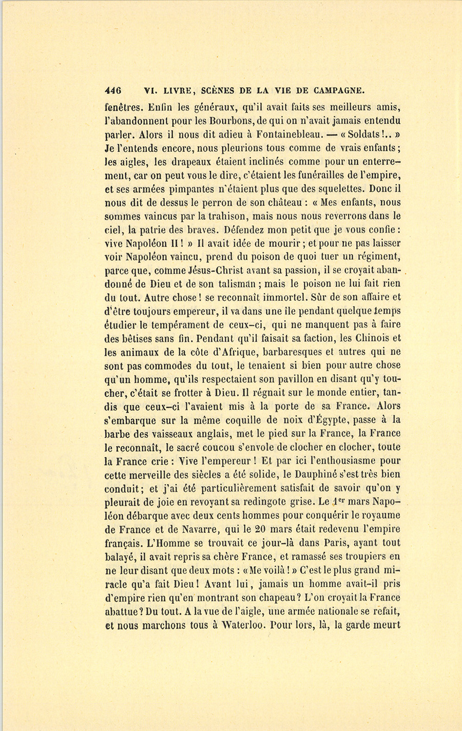 – J’étais si petite en 1815, que je n’ai jamais pu voir que son chapeau, encore ai-je manqué d’être écrasée à Grenoble.