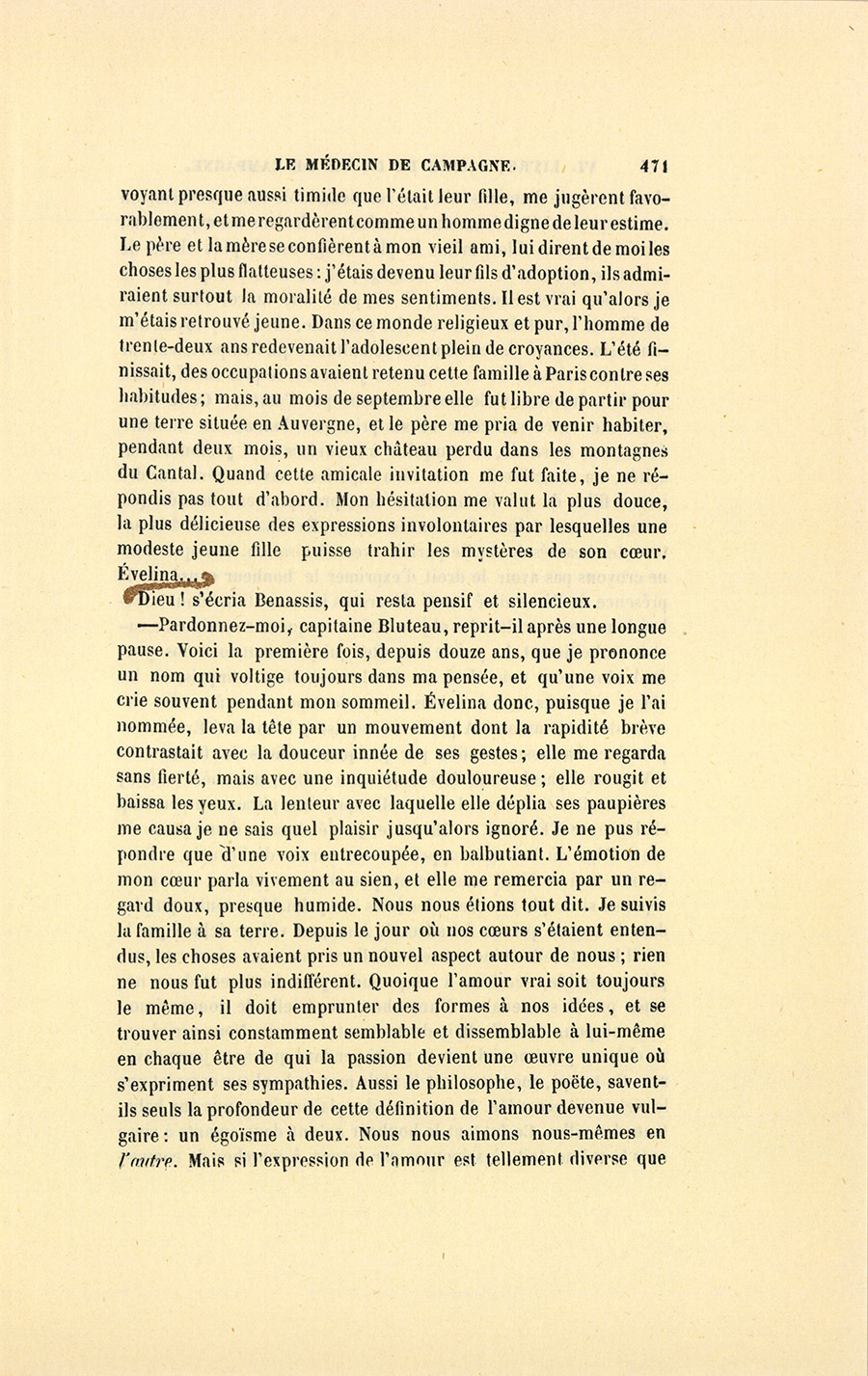 Il y eut un moment de silence, pendant lequel Benassis se mit à réfléchir sans prendre garde au regard perçant par lequel son hôte essayait de le pénétrer.