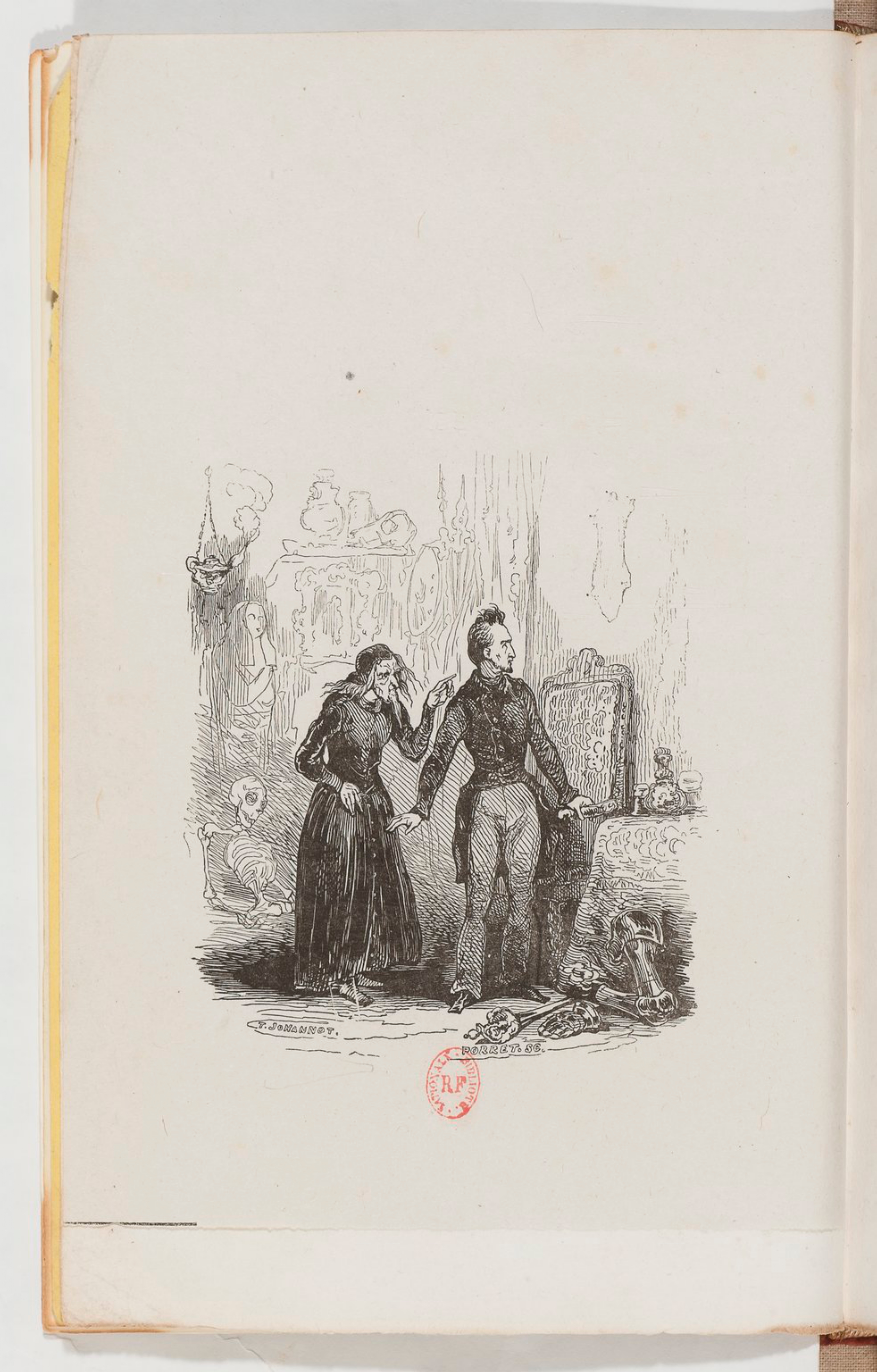 Jonathas, laissant échapper un sourire de contentement, prit une bougie dont la lumière tremblottait dans l’obscurité profonde des immenses appartemens de l’hôtel, et conduisit son maître, redevenu machine, à une vaste galerie dont il ouvrit brusquement la porte.