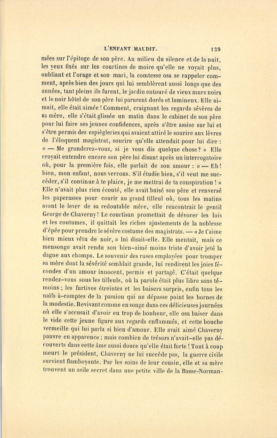 {p. 141} – Ah ! pauvre Chaverny ! s’écria-t-elle en pleurant, toi si soumis, si gracieux, tu m’as toujours été bienfaisant !
