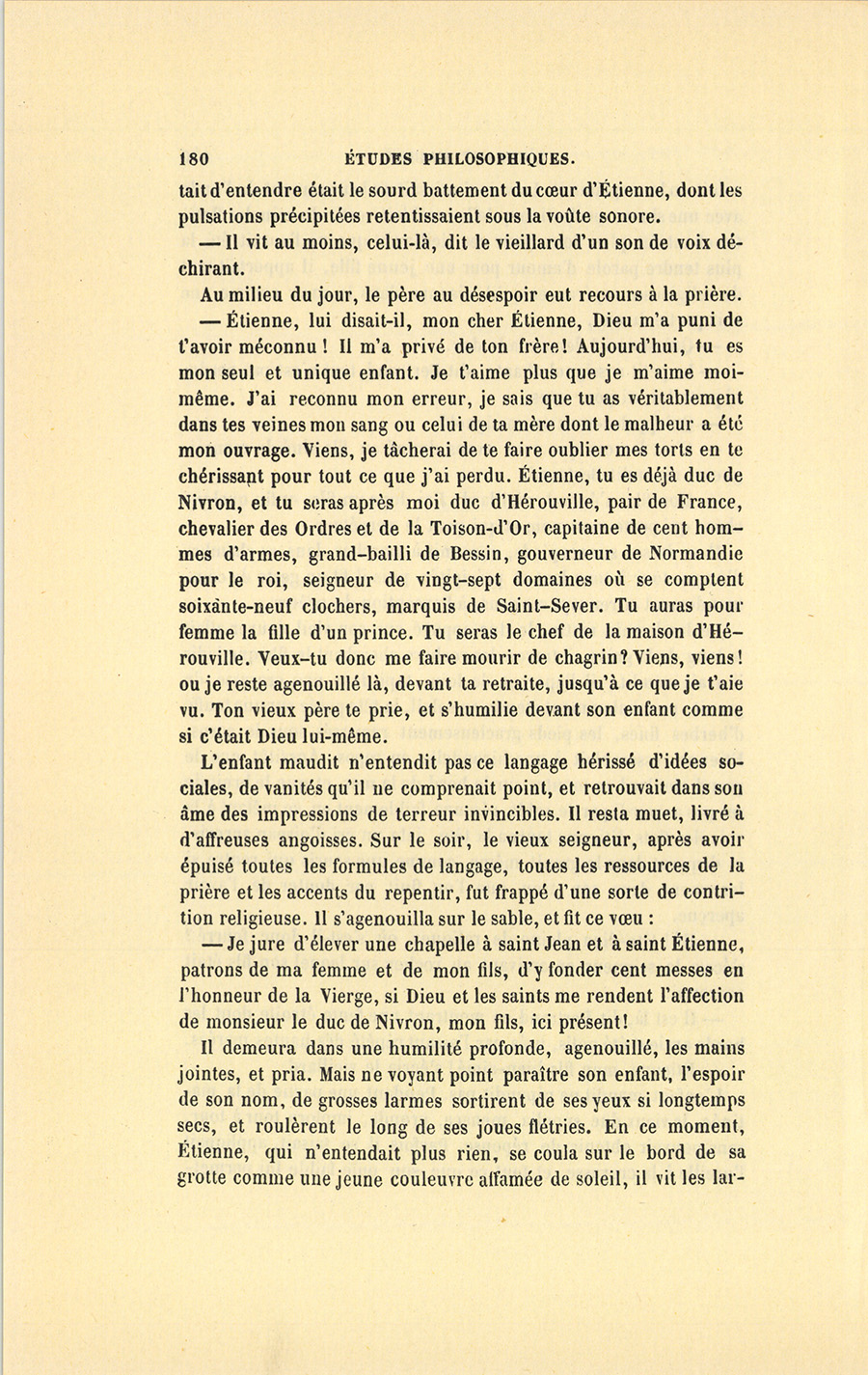 – Monseigneur de Nivron sera triste de vous perdre, mais il vivra pour l’honneur de sa maison ; vous vous résignerez à n’être que la femme d’un baron, au lieu d’être duchesse, et votre père vivra, répondit l’homme positif.