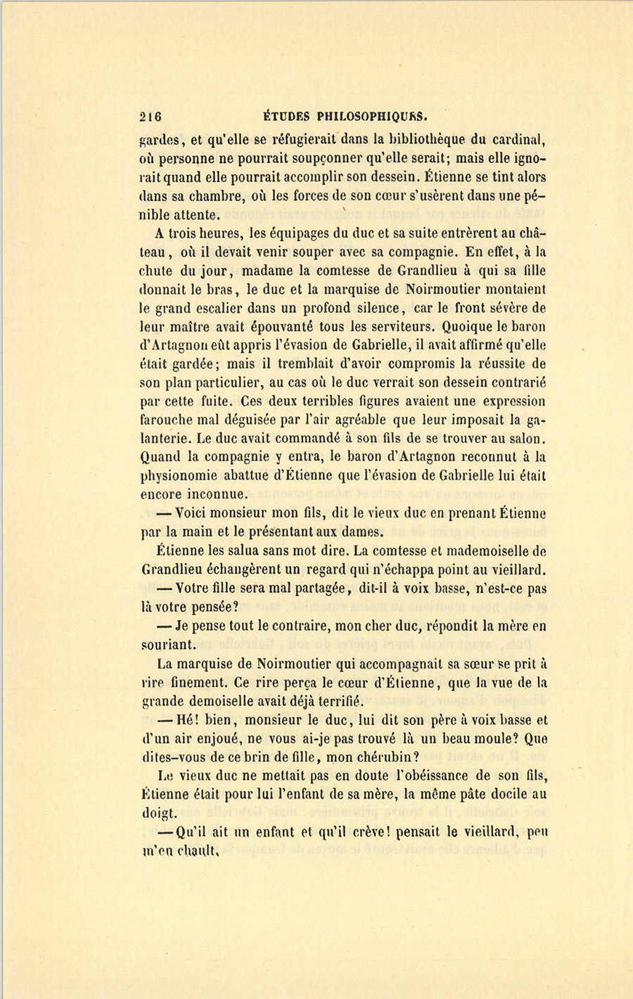 Étienne les salua sans mot dire. La comtesse et mademoiselle de Grandlieu échangèrent un regard qui n’échappa point au vieillard.