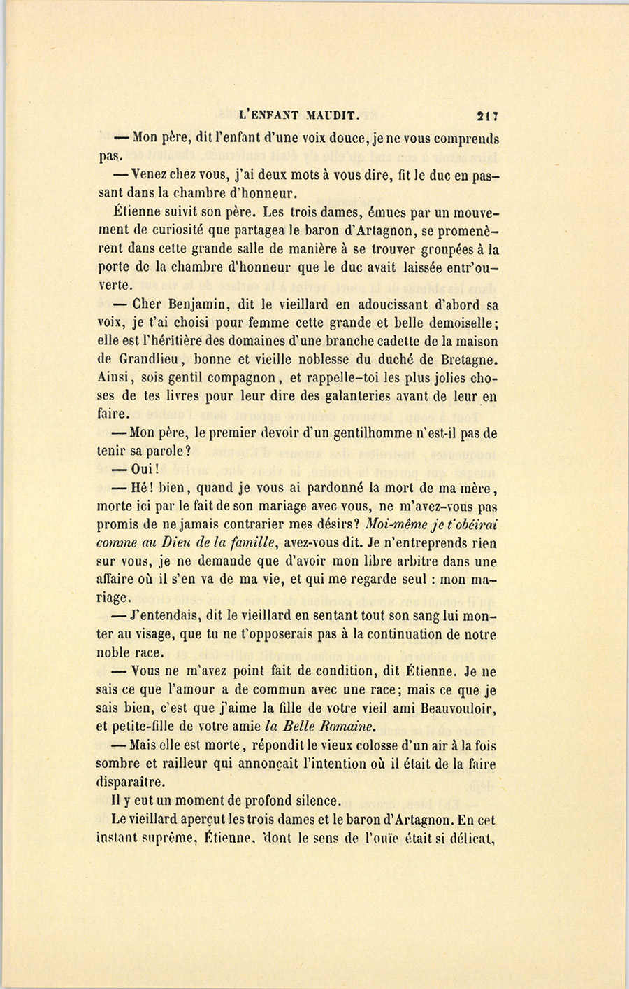 {p. 217} – Mon père, dit l’enfant d’une voix douce, je ne vous comprends pas.