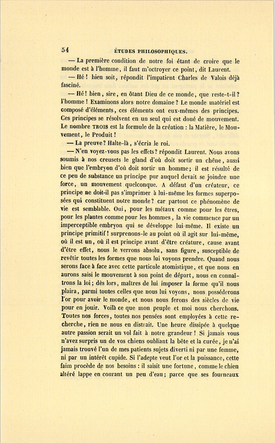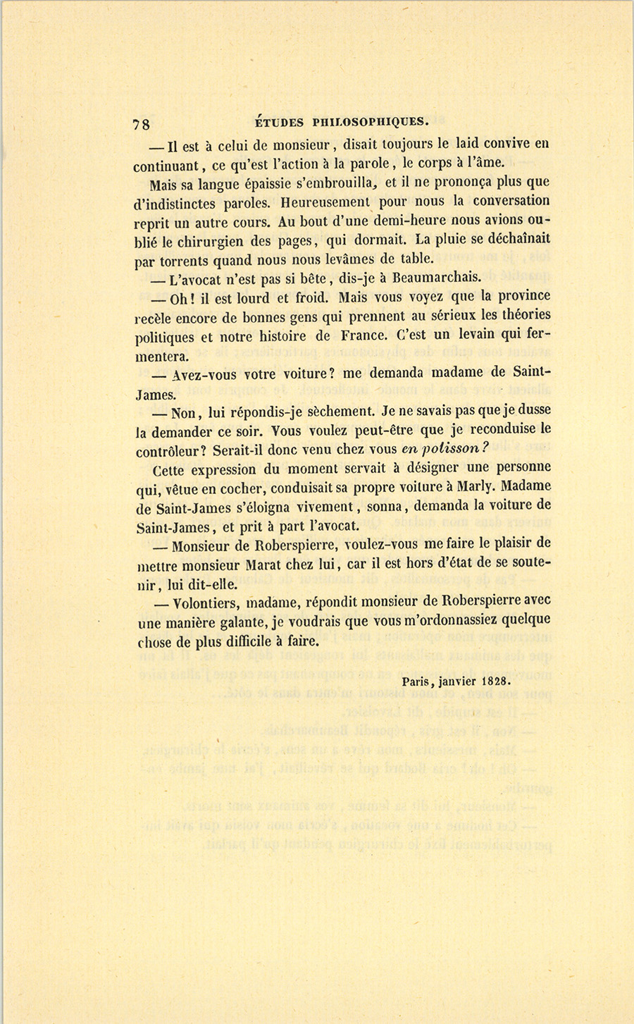 {p. 78} – Il est à celui de monsieur, disait toujours le laid convive en continuant, ce qu’est l’action à la parole, le corps à l’âme.