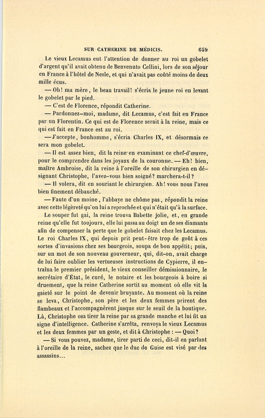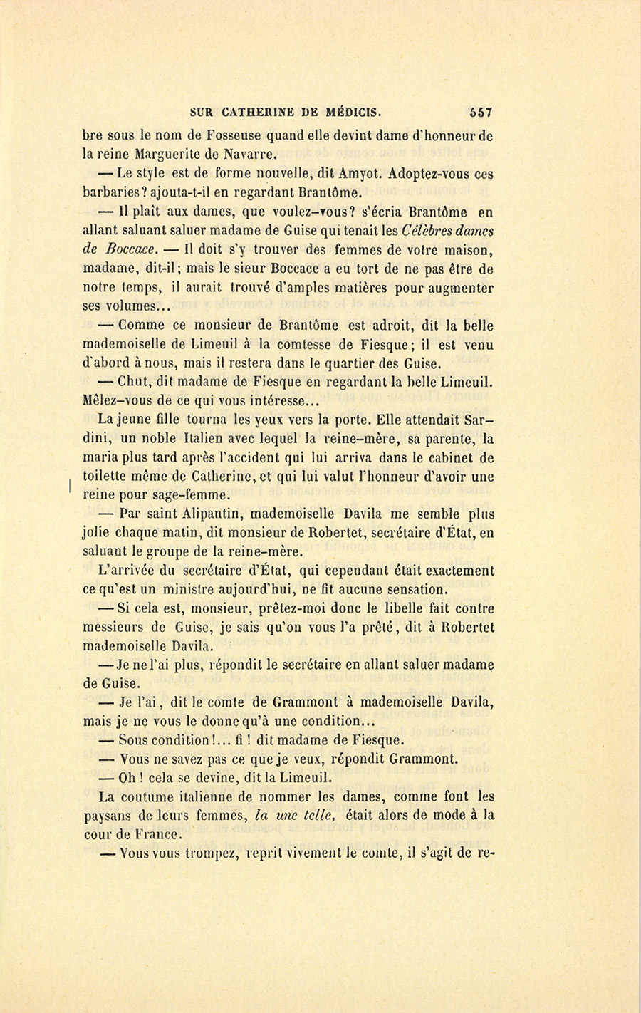 – Je le crois, madame, répondit mon voisin. Moi, j’ai parlé à Catherine de Médicis.