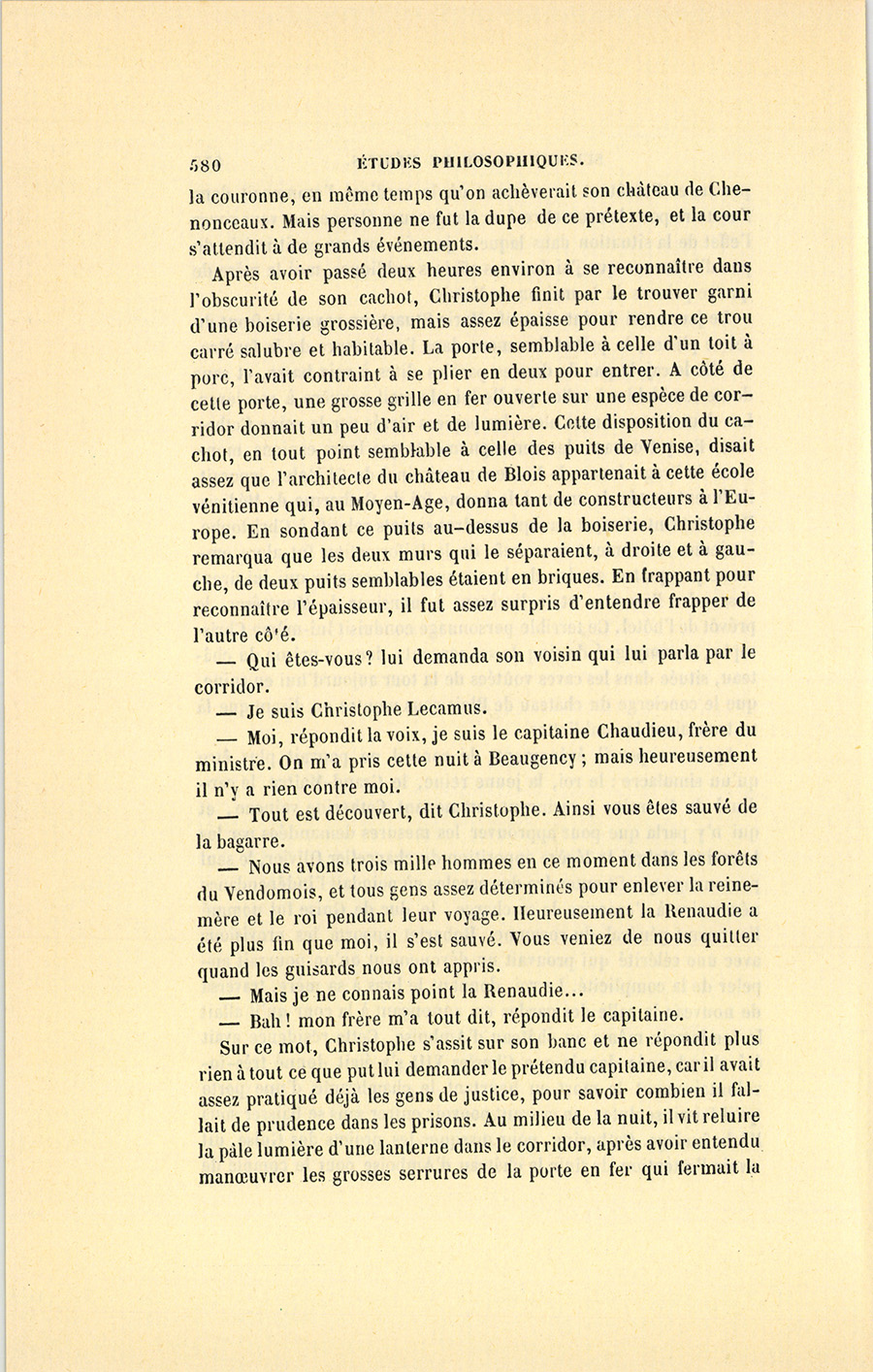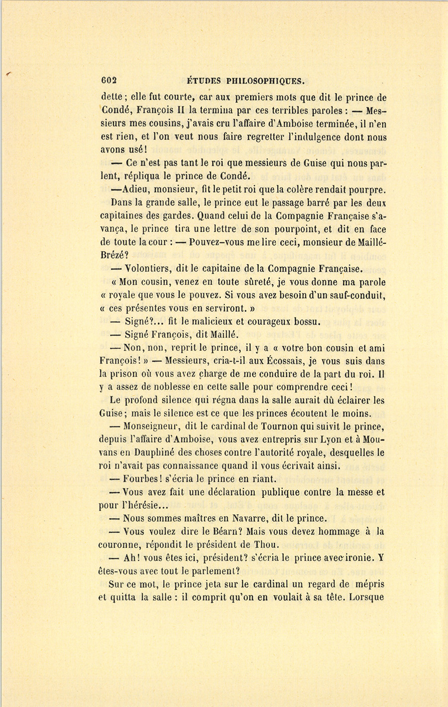 – Eh ! bien, dit Chaudieu au moment où le jeune Lecamus acheva sa phrase, ce batelier est la Renaudie, et voici monseigneur le prince de Condé, ajouta-t-il en montrant le petit bossu.