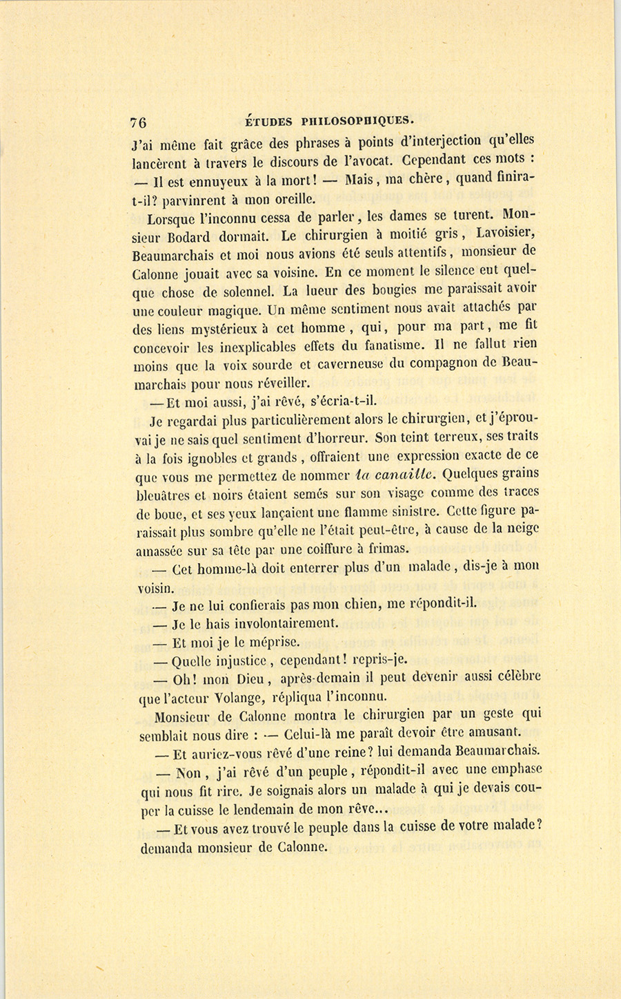 – Non, répondit-elle, c’est le chirurgien des pages ; il a beaucoup d’esprit, je vous jure, et d’ailleurs il écrit. C’est un savant physicien.