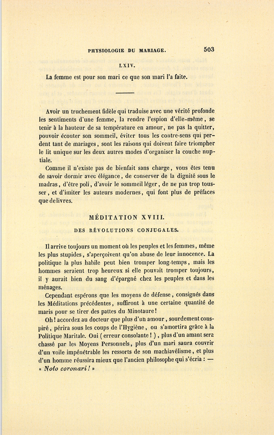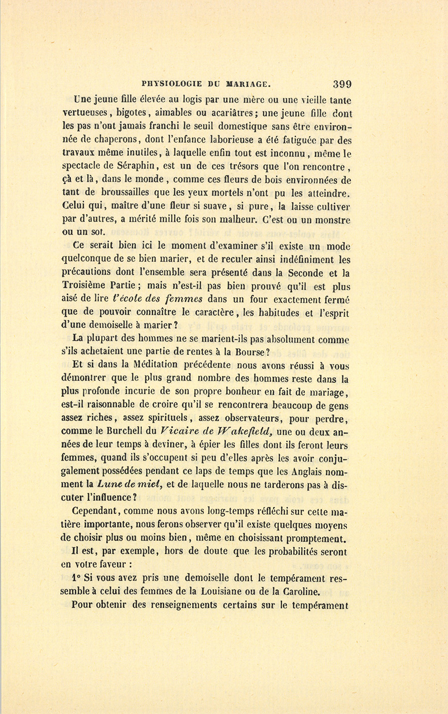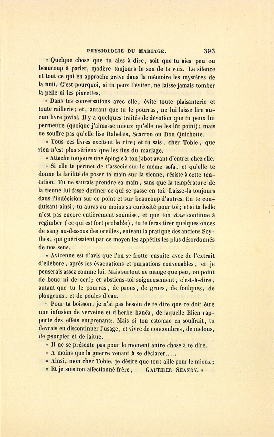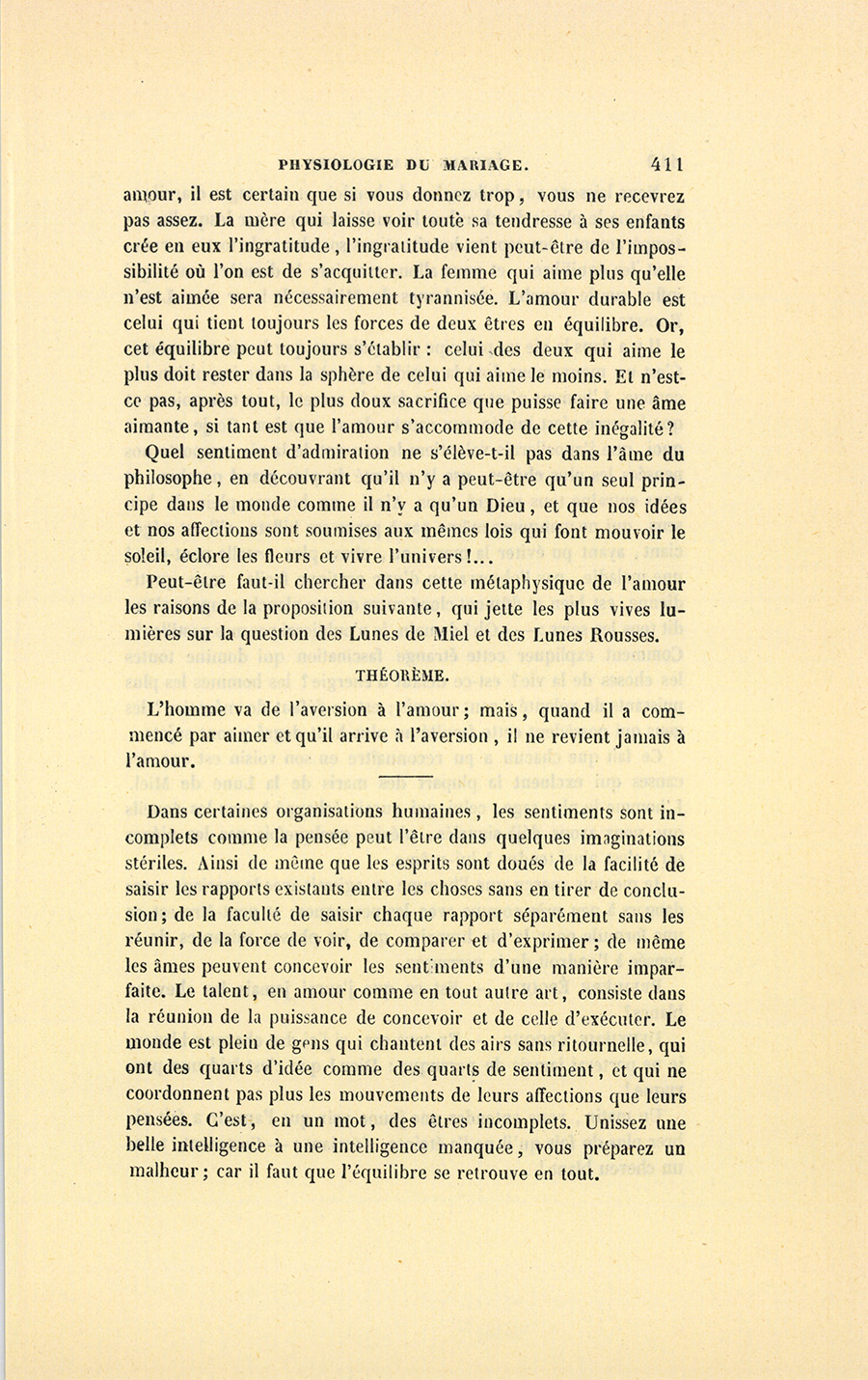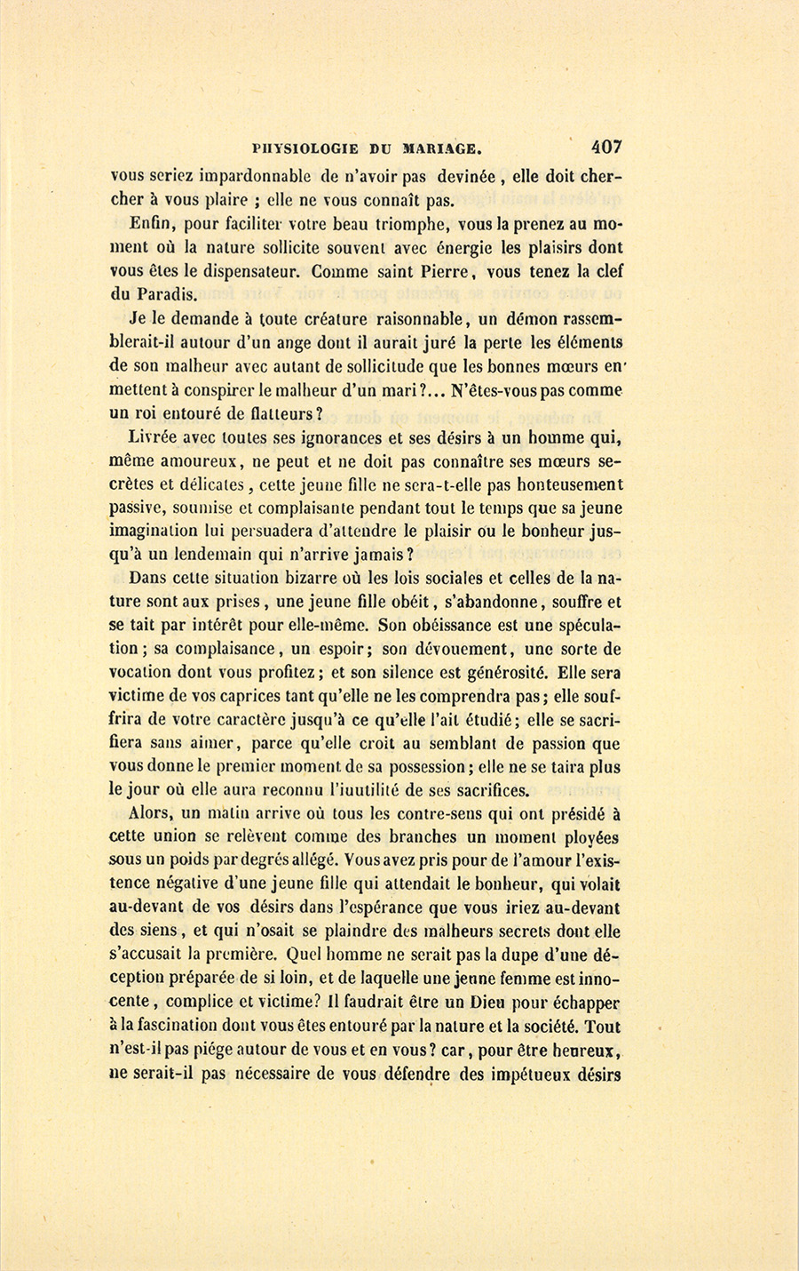Ce n’est pas à vous que s’adresse la Physiologie du Mariage, puisque vous n’êtes pas mariés. Ainsi soit-il toujours !