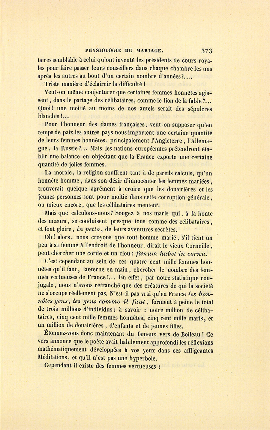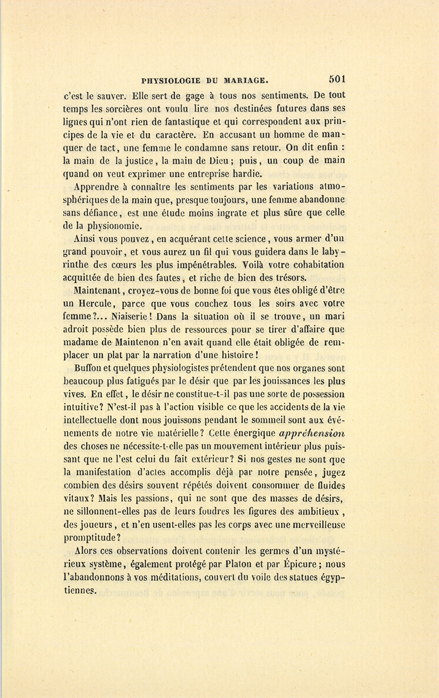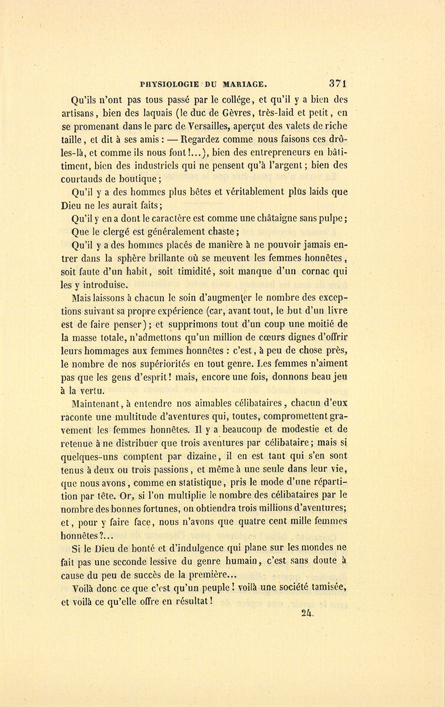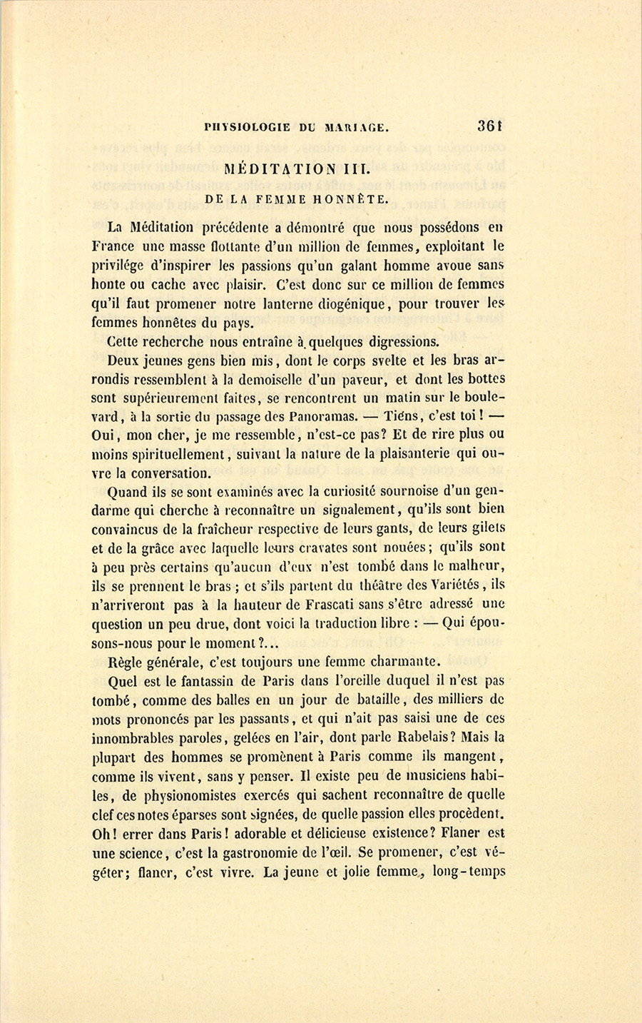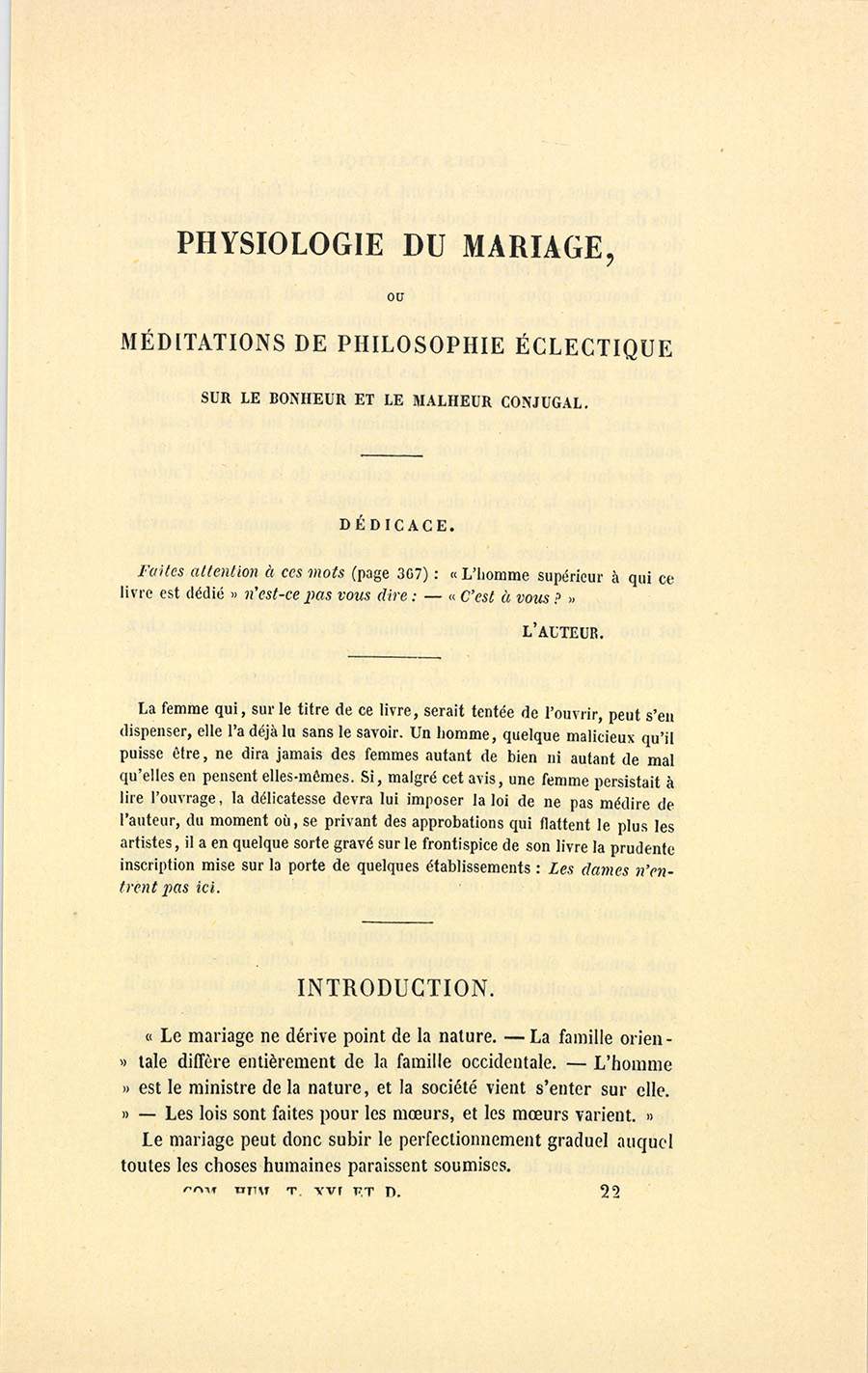 Ce n’est pas à vous que s’adresse la Physiologie du Mariage, puisque vous n’êtes pas mariés. Ainsi soit-il toujours !