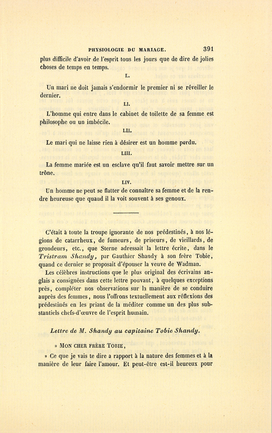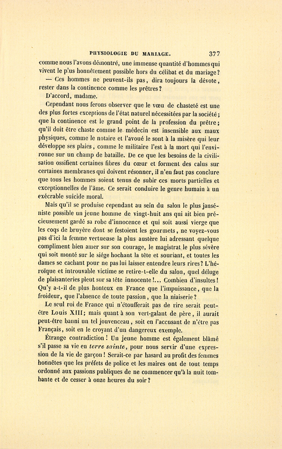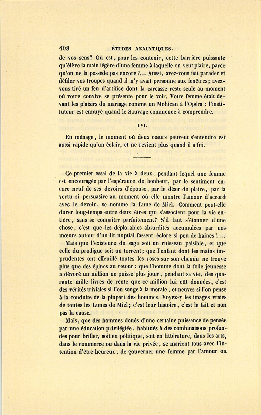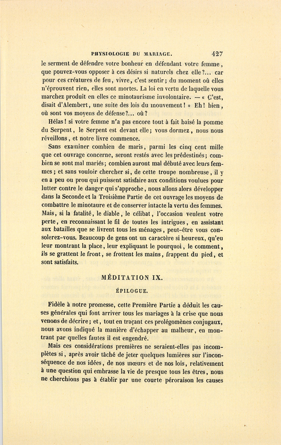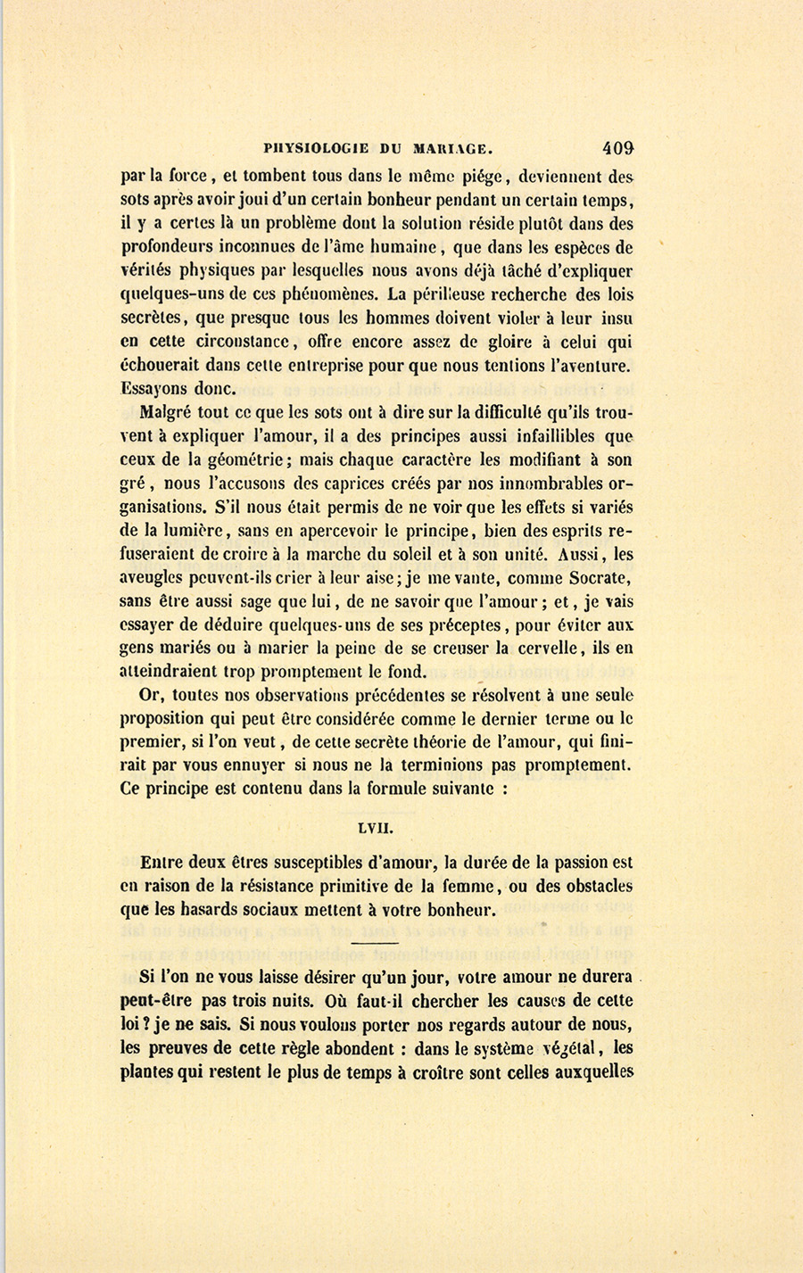 Ce n’est pas à vous que s’adresse la Physiologie du Mariage, puisque vous n’êtes pas mariés. Ainsi soit-il toujours !