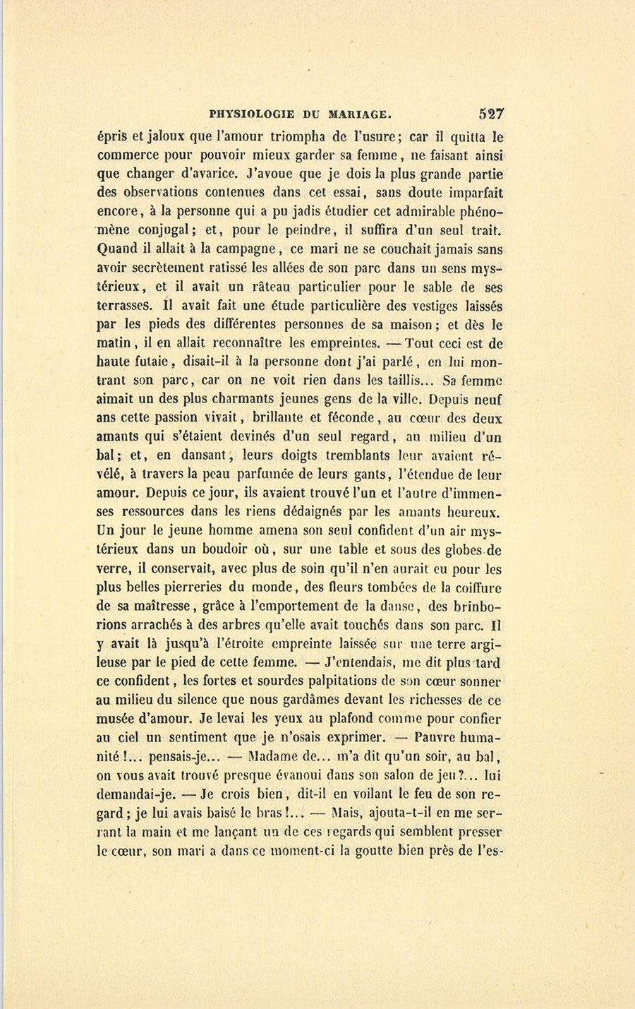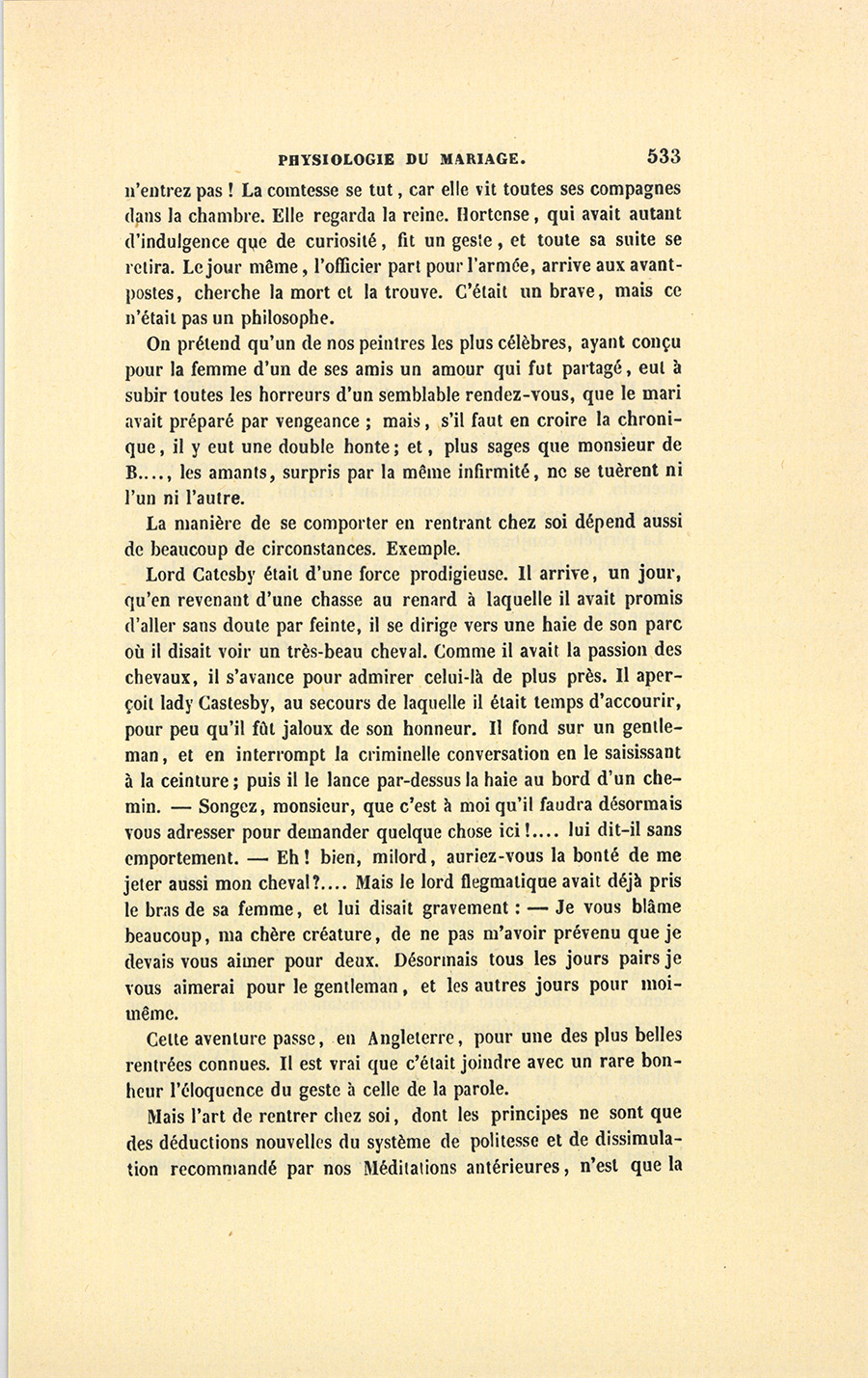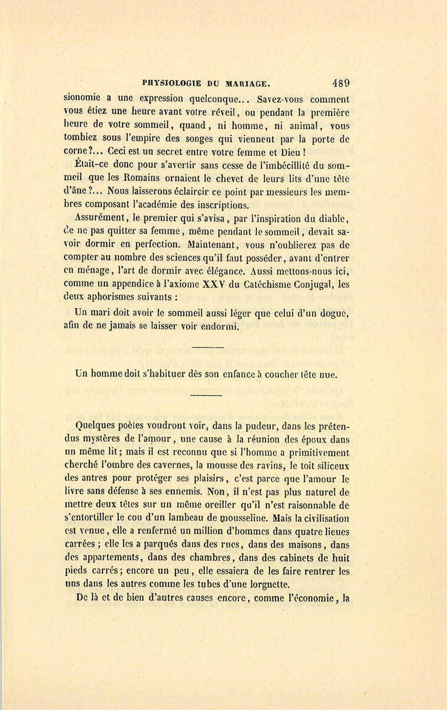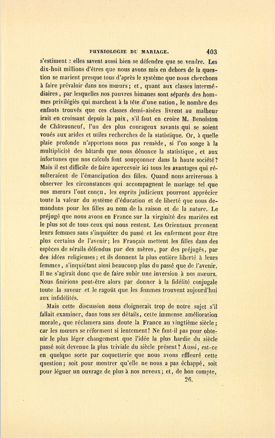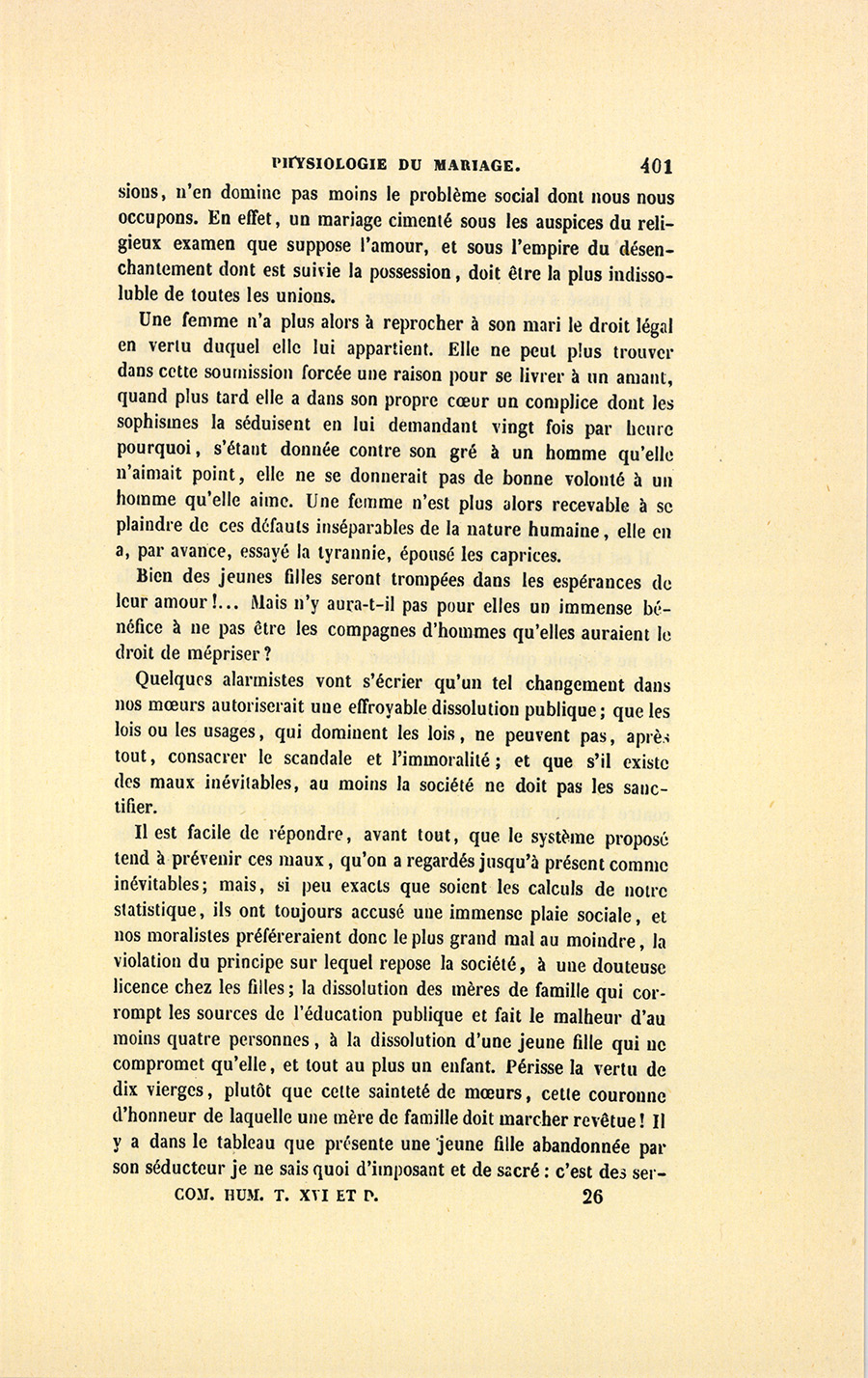 Ce n’est pas à vous que s’adresse la Physiologie du Mariage, puisque vous n’êtes pas mariés. Ainsi soit-il toujours !